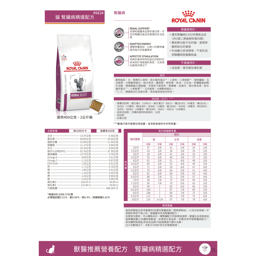 Royal Canin 法國皇家 腎臟病精選配方(RSE24)-2kg 處方貓飼料2kgCat FoodHappy pet shop商城