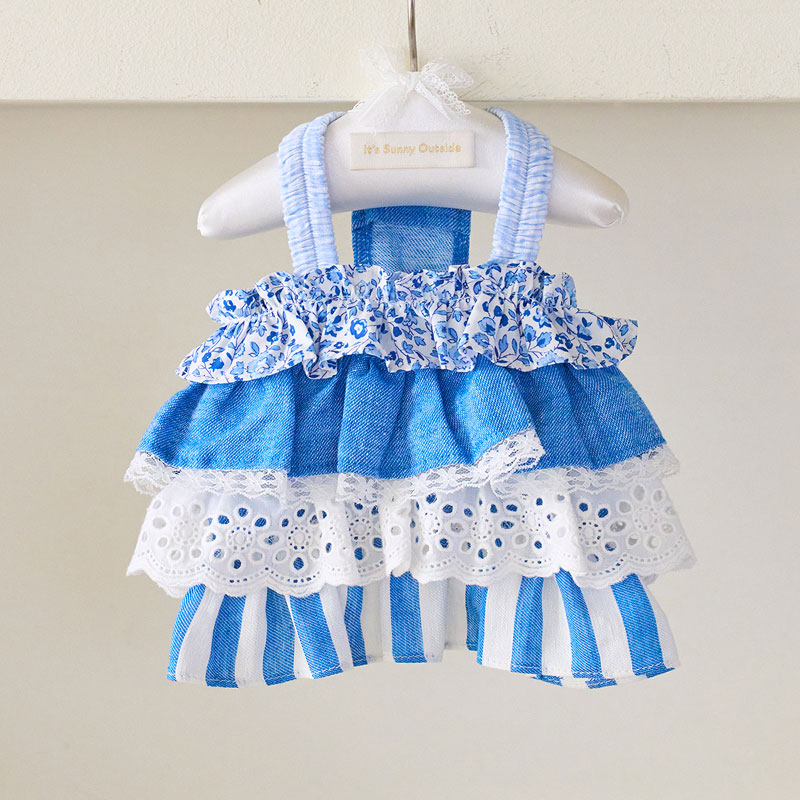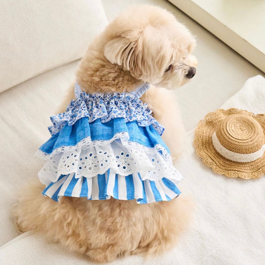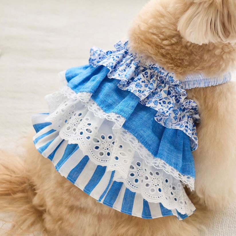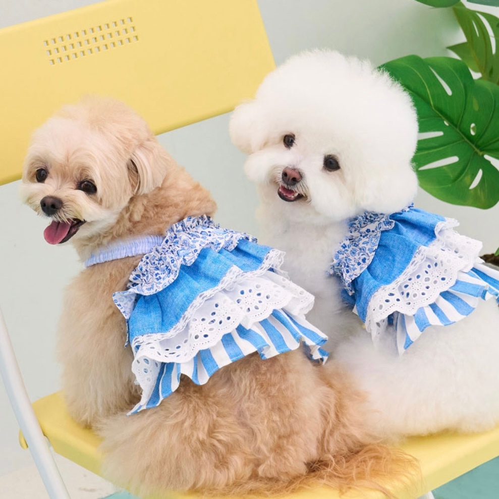 藍色尾巴 涼夏 Summer Breeze -拼接亞麻活力藍層裙- 韓國it’s 寵物衣服 寵物服飾 狗狗衣服 狗狗洋裝S|SM|M|L|XLPet ClothingLaLaWalk anifull 老犬輔助用品-藍色尾巴bluetail寵物精品