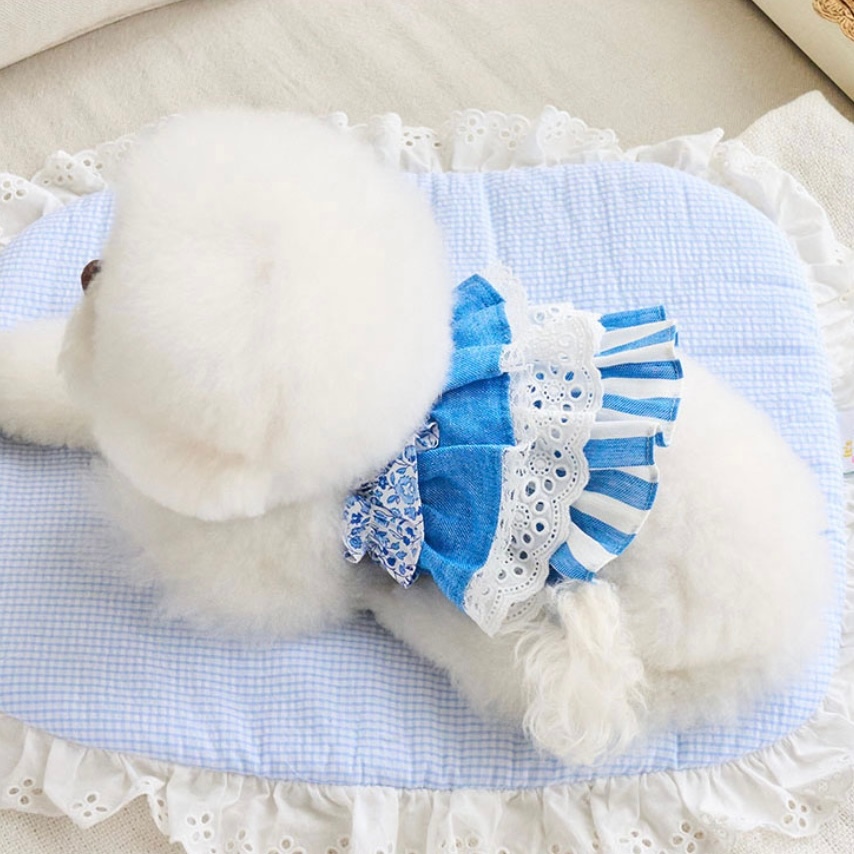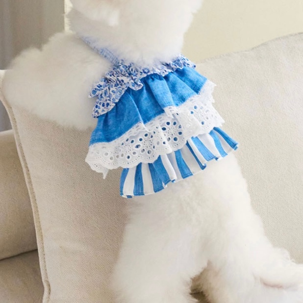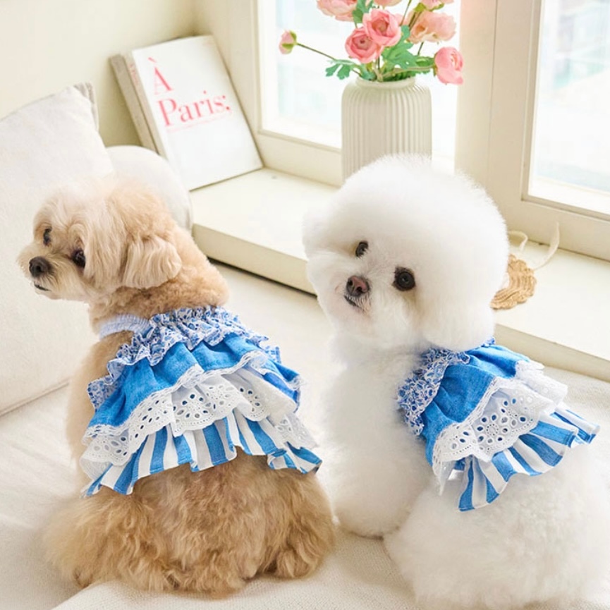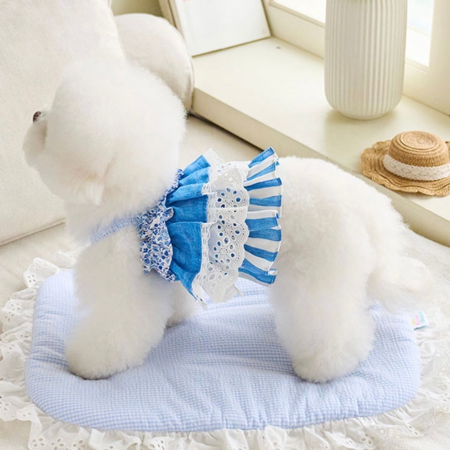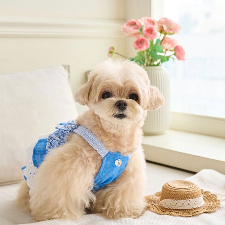 藍色尾巴 涼夏 Summer Breeze -拼接亞麻活力藍層裙- 韓國it’s 寵物衣服 寵物服飾 狗狗衣服 狗狗洋裝S|SM|M|L|XLPet ClothingLaLaWalk anifull 老犬輔助用品-藍色尾巴bluetail寵物精品