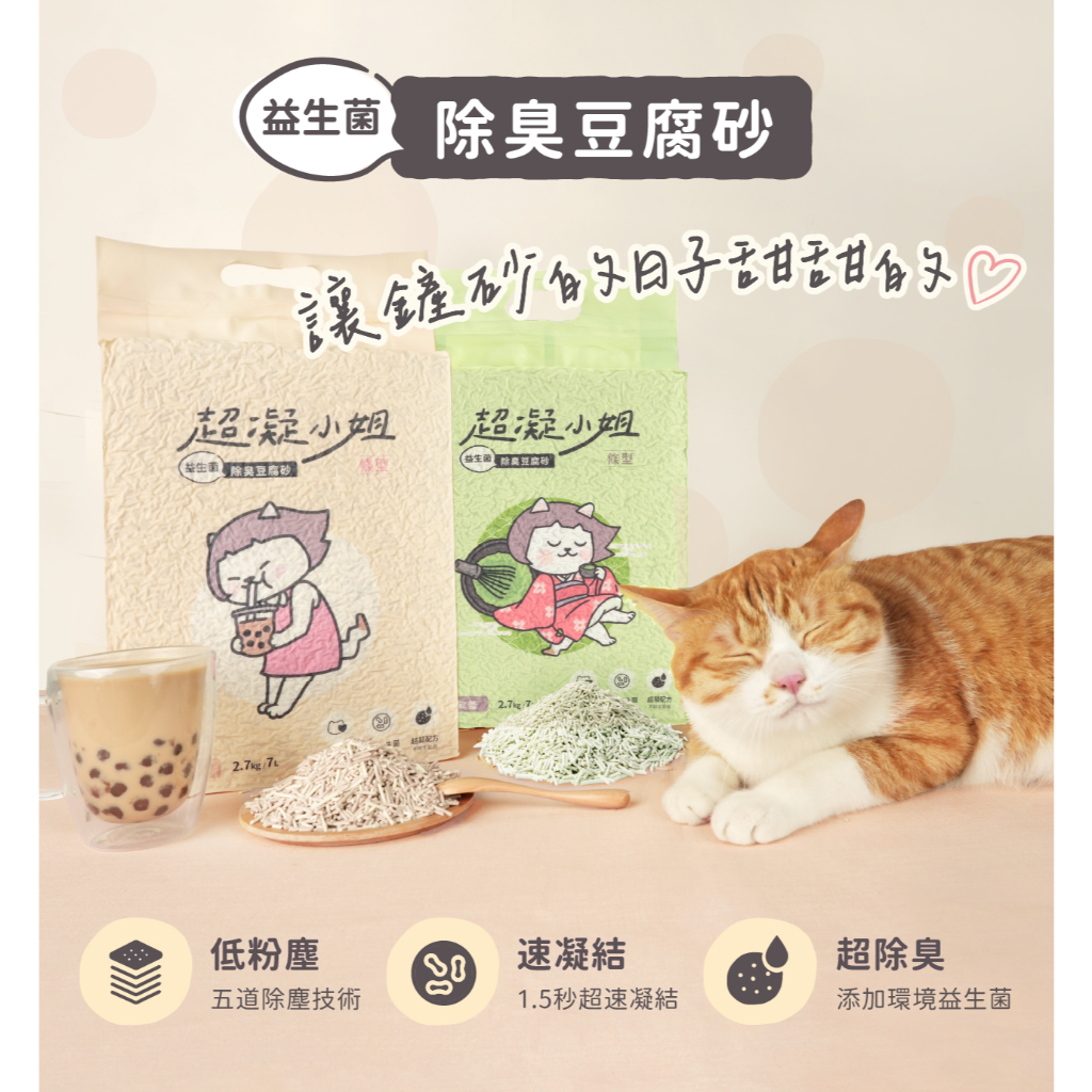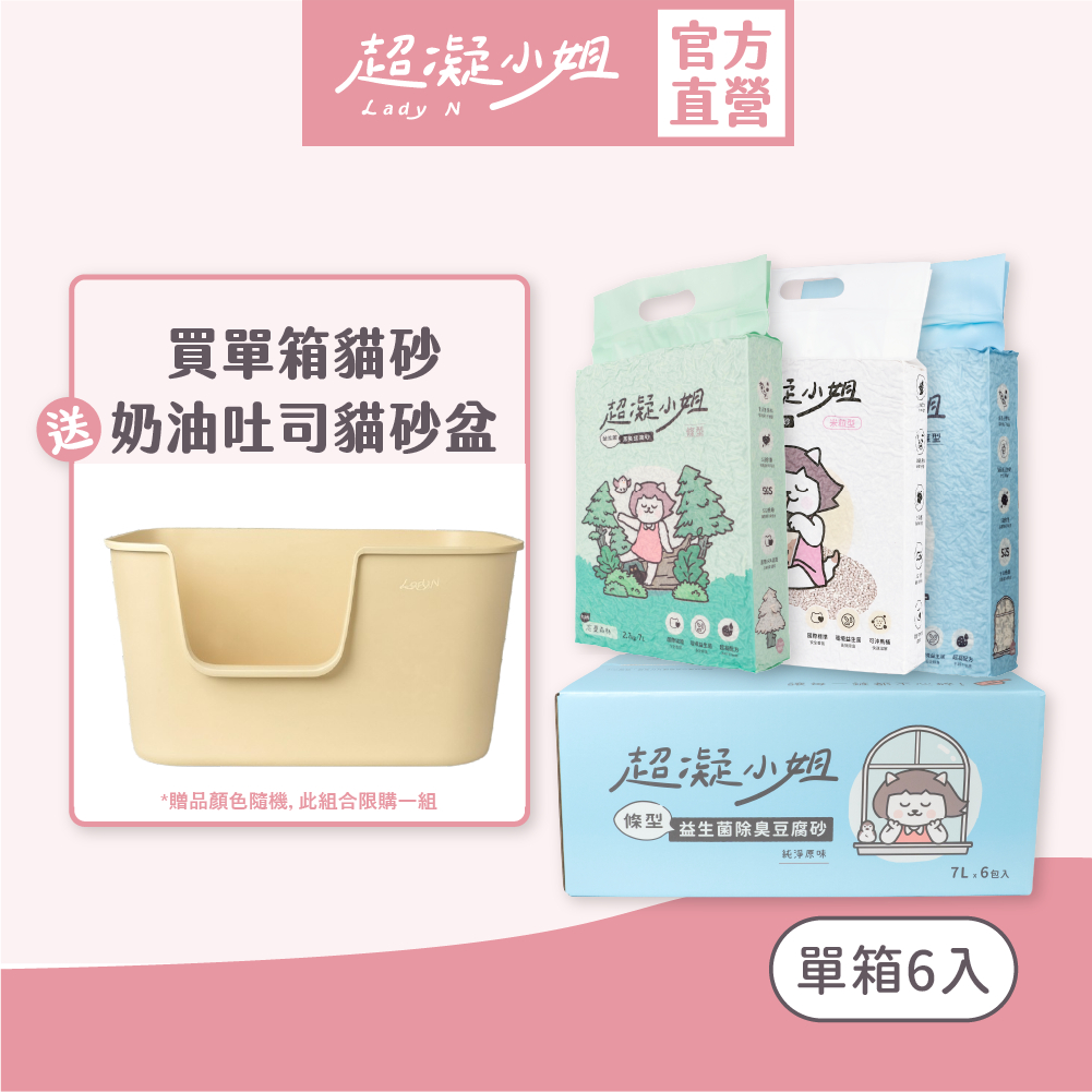 超凝小姐|益生菌除臭豆腐砂(7L)【原味/森林/珍奶口味】 單箱6入 送 奶油吐司貓砂盆(顏色隨機)條型原味6包送奶油吐司貓砂盆(顏色隨機)|條型森林6包送奶油吐司貓砂盆(顏色隨機)|米粒型珍奶6包送奶油吐司貓砂盆(顏色隨機Cat Litter & BoxesLady N 超凝小姐品牌館