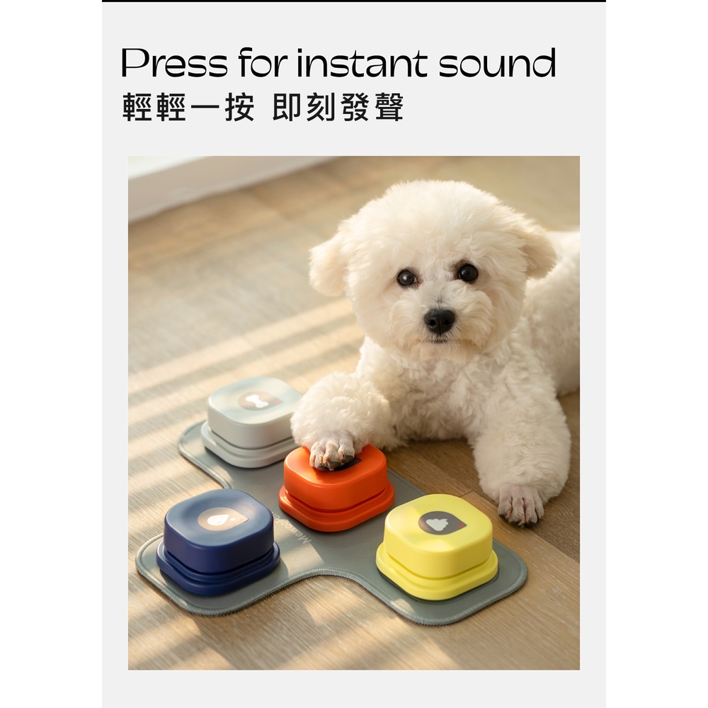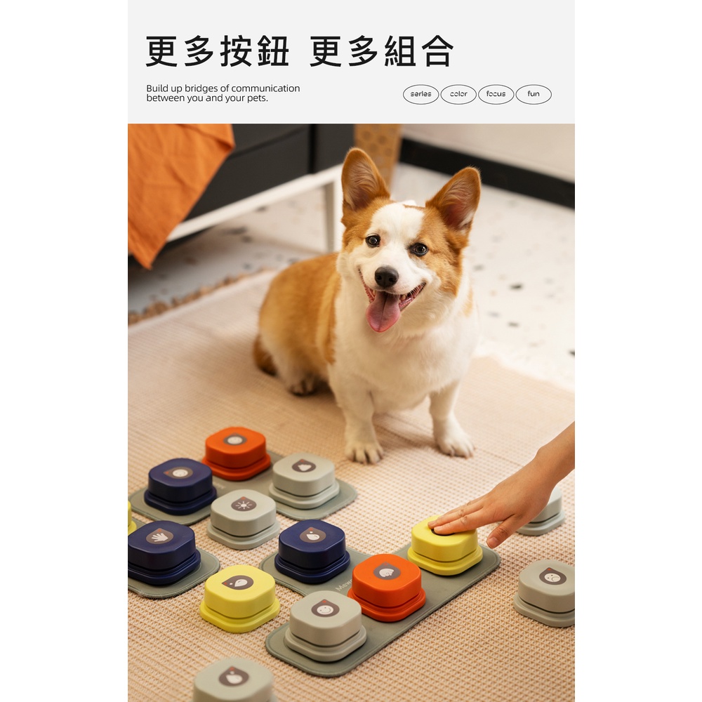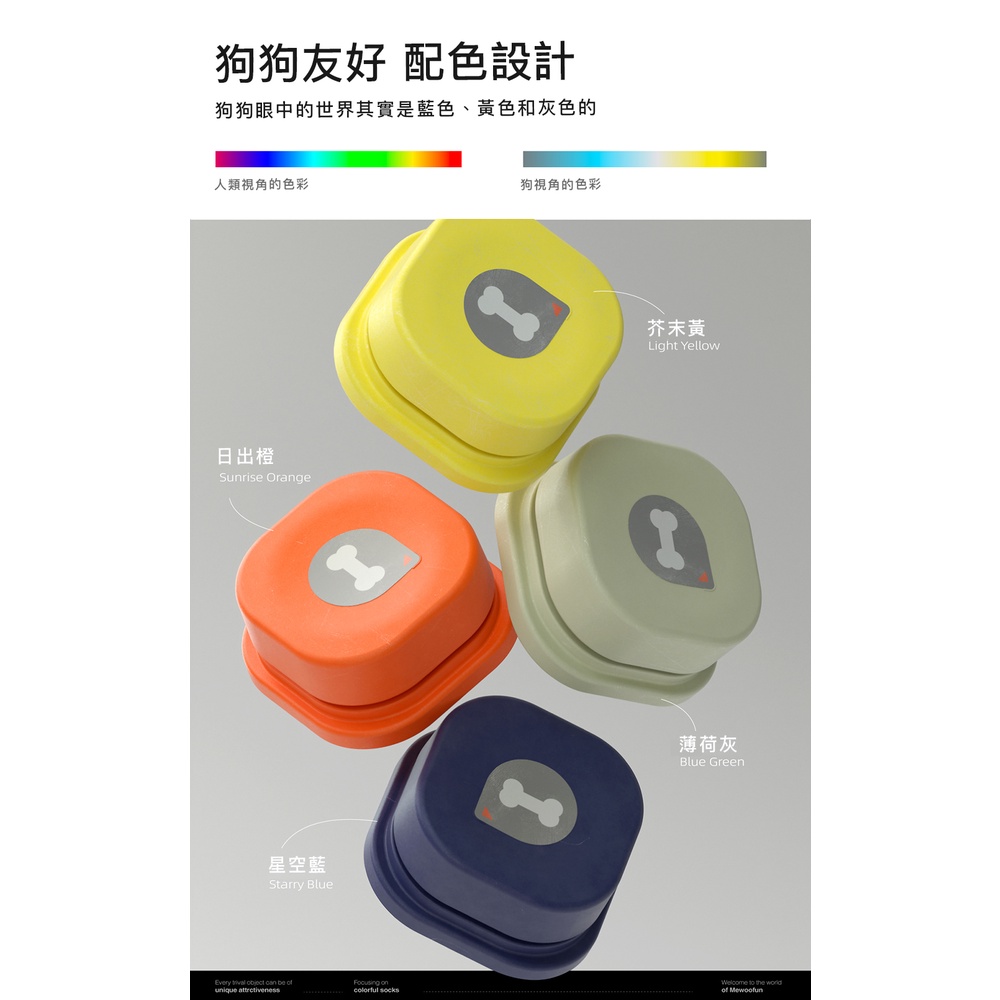 MewooFun 狗狗錄音按鈴 狗按鈴 寵物訓練鈴寵物交流按鈕 按鈕玩具 狗狗交流 狗狗按鈕 寵物錄音按鈕 喵乎汪也按鈕 – 芥末黃|按鈕 – 日出橙|按鈕 – 薄荷灰|按鈕 – 星空藍|橡膠墊 – 2格Toysmao & kou 官方旗艦店