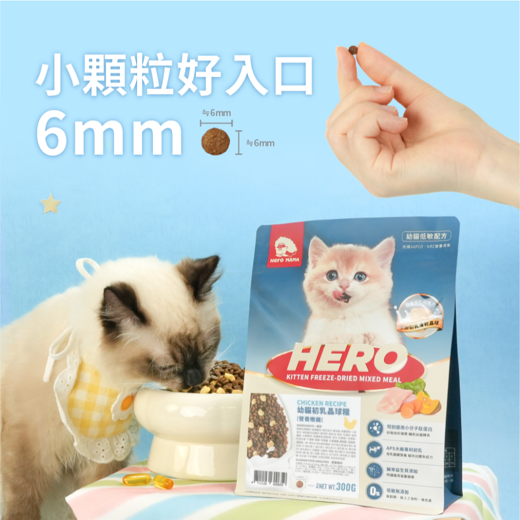 【HeroMama】首購7折 幼貓初乳晶球糧(2入體驗組賣場)6mm小顆粒飼料+初乳凍乾晶球+增量營養素+低敏腸胃友善營養嫩雞 300g x 2包|營養鱈魚 300g x 2包(售完不補)|營養嫩雞+營養鱈魚 300g(售完不補)Cat FoodHeroMama品牌旗艦店
