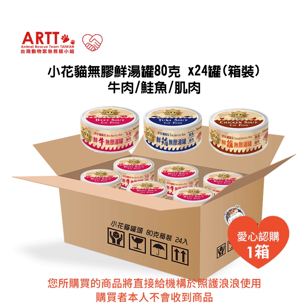 <此賣場為愛心公益捐贈-購買者不會收到商品>【i寵星球 X 台灣貓狗聯合勸募平台ARTT】小花貓罐頭80克*24罐 1箱雞肉+雞肝鮮湯罐80克*24罐,紙本收據(請備註姓名、電話、地址)|雞肉+雞肝鮮湯罐80克*24罐,電子收據(請備註姓名、地址、Email)|雞肉+雞肝鮮湯罐80克*24罐,不需收據|牛肉+雞肉鮮湯罐80克*24罐,紙本收據(請備註姓名、電話、地址)|牛肉+雞肉鮮湯罐80克*24罐,電子收據(請備註姓名、地址、Email)|牛肉+雞肉鮮湯罐80克*24罐,不需收據|鮪魚+雞肉鮮湯罐80克*24罐,紙本收據(請備註姓名、電話、地址)|鮪魚+雞肉鮮湯罐80克*24罐,電子收據(請備註姓名、地址、Email)|鮪魚+雞肉鮮湯罐80克*24罐,不需收據|鮪魚+雞肝鮮湯罐80克*24罐,紙本收據(請備註姓名、電話、地址)|鮪魚+雞肝鮮湯罐80克*24罐,電子收據(請備註姓名、地址、Email)|鮪魚+雞肝鮮湯罐80克*24罐,不需收據|鮪魚+魷魚鮮湯罐80克*24罐,紙本收據(請備註姓名、電話、地址)|鮪魚+魷魚鮮湯罐80克*24罐,電子收據(請備註姓名、地址、Email)|鮪魚+魷魚鮮湯罐80克*24罐,不需收據|鮪魚+牛肉鮮湯罐80克*24罐,紙本收據(請備註姓名、電話、地址)|鮪魚+牛肉鮮湯罐80克*24罐,電子收據(請備註姓名、地址、Email)|鮪魚+牛肉鮮湯罐80克*24罐,不需收據Cat Foodi寵星球