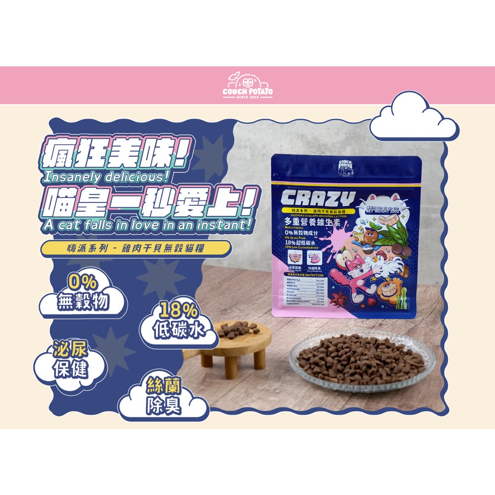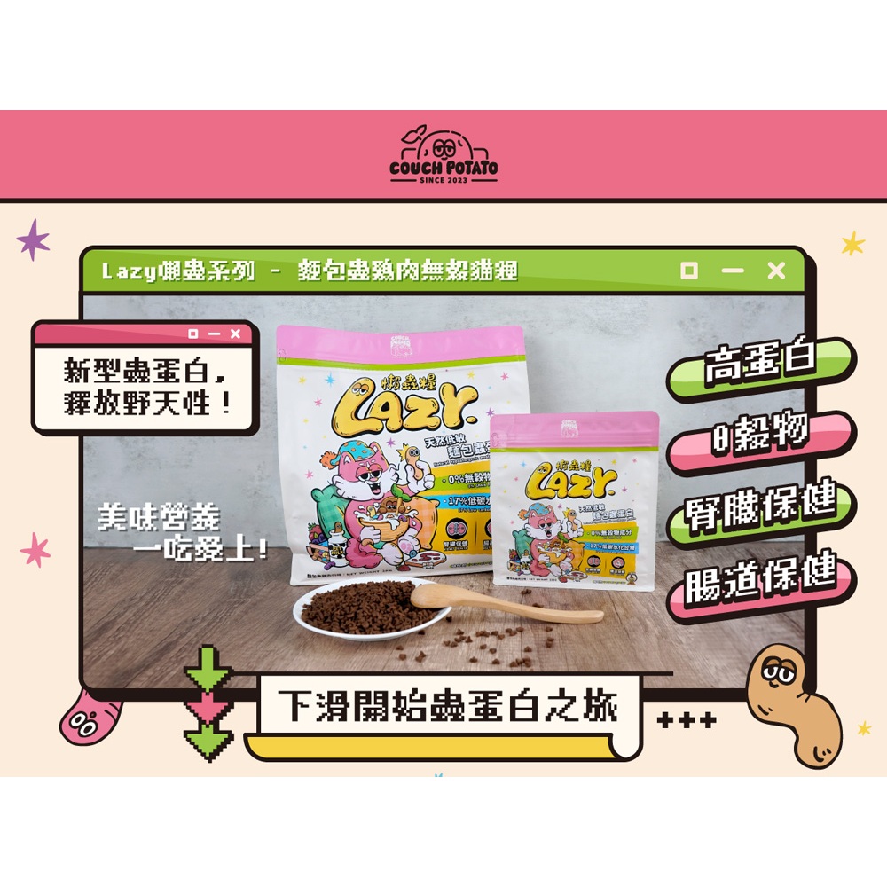 沙發馬鈴薯 貓咪 Lazy 懶蟲無穀貓用乾糧 Crazy 嗨派無穀貓用乾糧 麵包蟲蛋白 雞肉干貝 貓飼料 無穀 乾糧