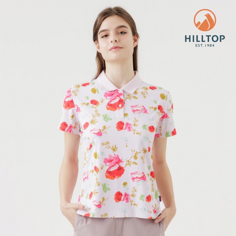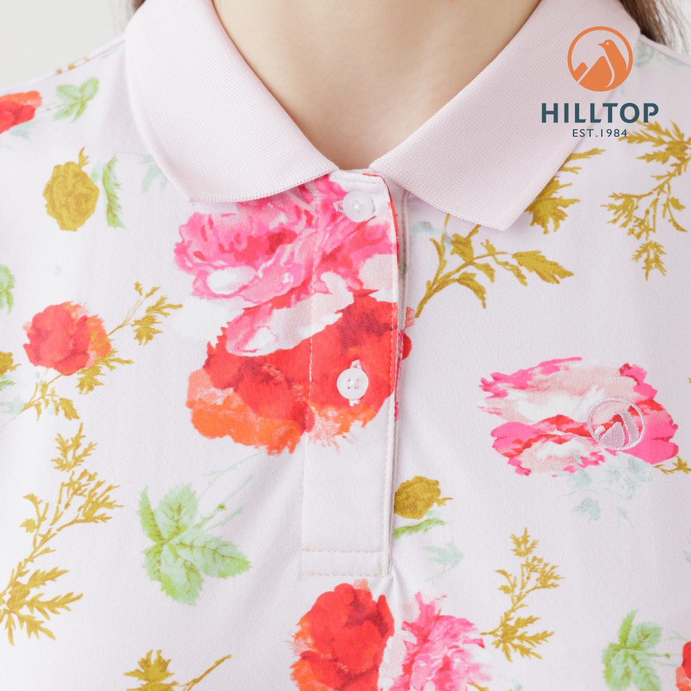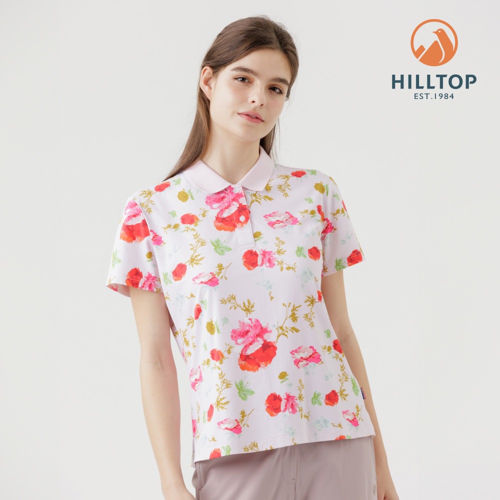 【Hilltop山頂鳥】Polygiene抗菌抗UV吸濕快乾印花POLO衫 女款 淺粉PS14XFL7ECFZL|XL|2XL|S|MT-shirtsHILLTOP 山頂鳥 官方旗艦館