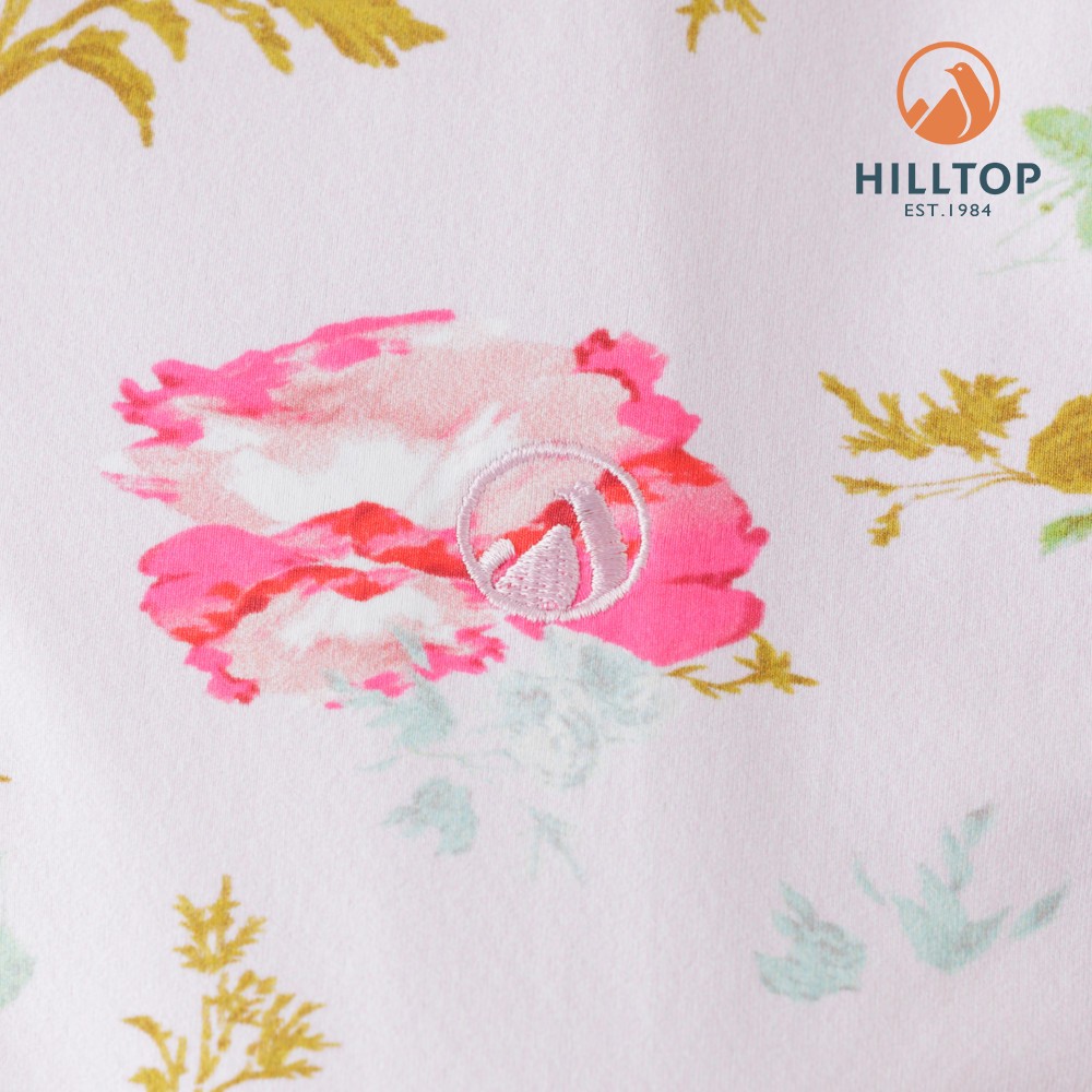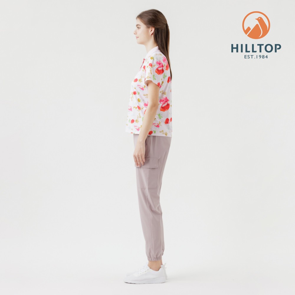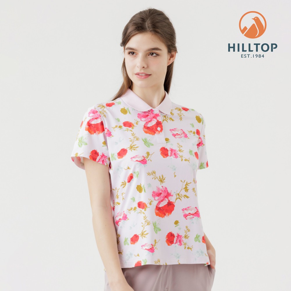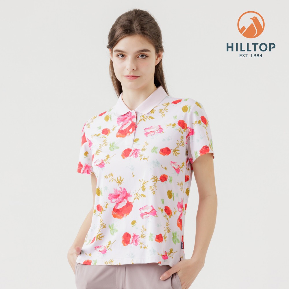 【Hilltop山頂鳥】Polygiene抗菌抗UV吸濕快乾印花POLO衫 女款 淺粉PS14XFL7ECFZL|XL|2XL|S|MT-shirtsHILLTOP 山頂鳥 官方旗艦館