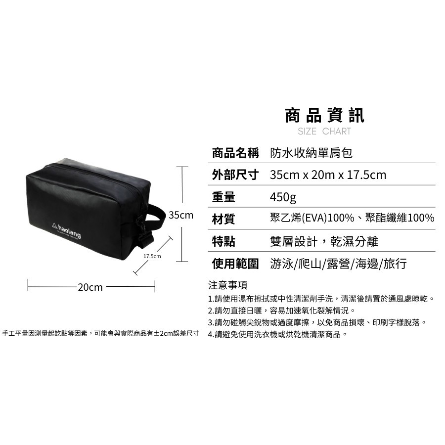 Haolang 防水收納單肩包 (雙色)/游泳訓練溫泉單肩包/乾溼分離包/大容量/防水材質/墨黑色/軍綠色/玩水必備墨黑|軍綠Dry BagsHaolang浩浪泳裝