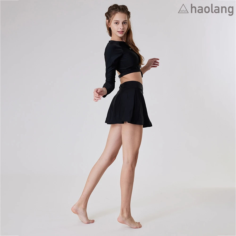 Haolang 經典黑高腰泳裙(單件)/百搭泳裙/高腰設計/裙內四角褲M|L|XL|2LSwimming AttireHaolang浩浪泳裝
