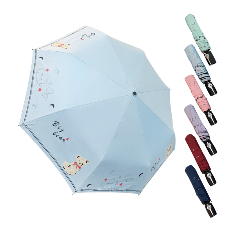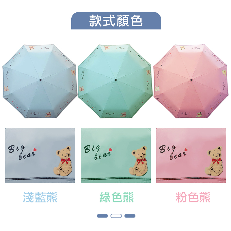 晴雨兩用 黑膠自動傘 防紫外線 遮光防曬 自動傘 遮陽傘 摺疊傘 雨傘 陽傘 折疊傘 晴雨傘 印花傘淺藍熊|綠色熊|粉色熊|紫色花|丈青花|暗紅花UmbrellasHomey家居衣著