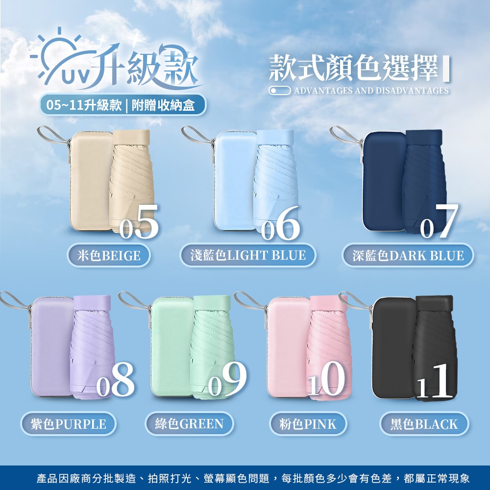 【LAVIDA嚴選】迷你口袋傘 迷你傘 摺疊傘 口袋傘 遮陽傘 抗UV傘 超輕量晴雨傘 便攜小傘 口袋陽傘 隨身防曬傘【升級款】米色-贈膠囊盒|【升級款】淺藍-贈膠囊盒|【升級款】深藍-贈膠囊盒|【升級款】紫色-贈膠囊盒|【升級款】綠色-贈膠囊盒|【升級款】粉色-贈膠囊盒|【升級款】黑色-贈膠囊盒|01.粉-摺疊口袋傘|02.天藍-摺疊口袋傘|03.霧藍-摺疊口袋傘|04.深藍-摺疊口袋傘|05.黑-摺疊口袋傘|06.淺紫-摺疊口袋傘|07.抹茶綠-摺疊口袋傘|08.墨綠-摺疊口袋傘|09.米色-摺疊口袋傘UmbrellasLAVIDA 育兒好好玩!