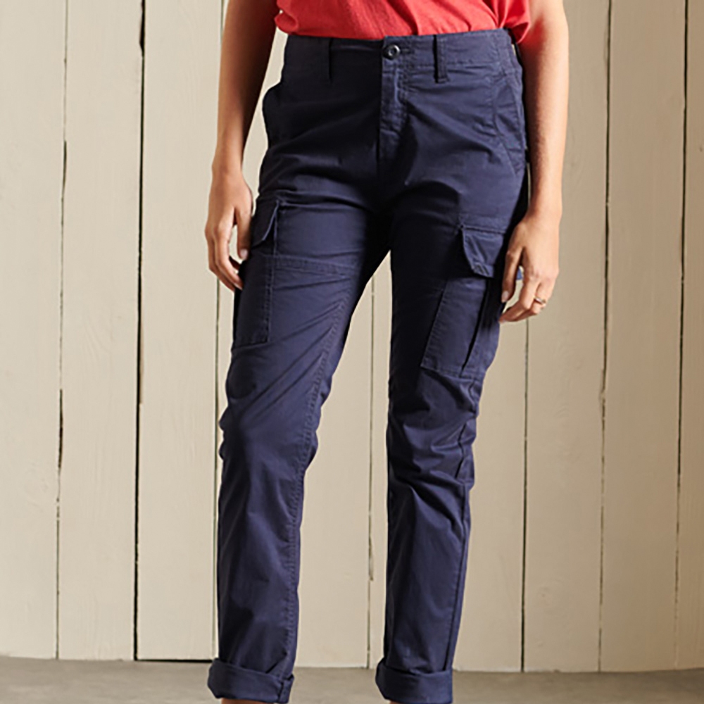 【Superdry】女裝 休閒長褲 工裝褲 有機棉 Slim Cargo 海軍藍28|30|32BottomsISPO+官方旗艦店