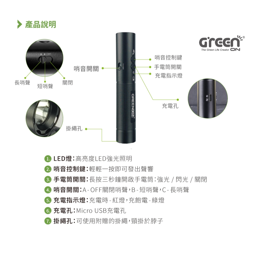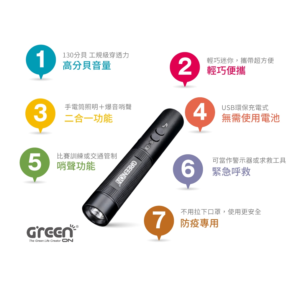【GREENON】工規級USB電子哨手電筒-(GS368) 電子口哨 全新進化130分貝 夜間行走防身 交通指揮 運動比【GREENON】工規級USB電子哨手電筒-(GS368) 電子口哨 全新進化130分貝 夜間行走防身 交通指揮 運動比Camping & HikingGreenon橘能