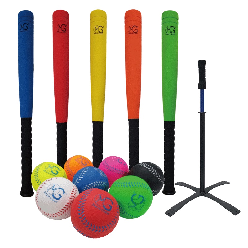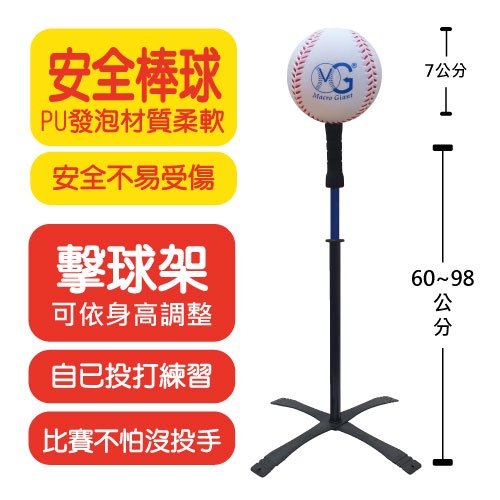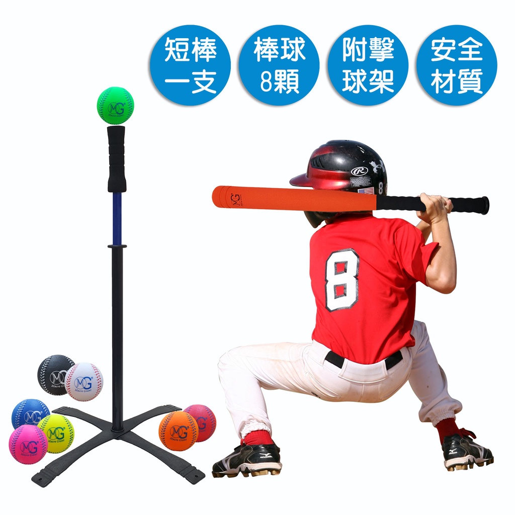 MACRO GIANT 24吋短棒+8顆7cm棒球組(泡殼) 附擊球架 安全無毒棒球 pu發泡黃|綠|橙|紅|藍Baseball & SoftballMACRO GIANT 休閒玩具品牌