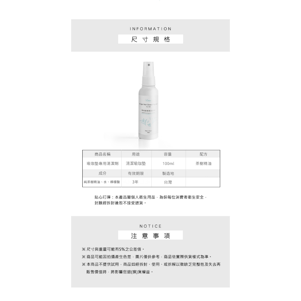 【LOTUS】台灣製天然茶樹清潔劑 潔淨噴霧 100ML 瑜珈舖巾 超慢跑墊 瑜珈墊專用天然茶樹Yoga & PilatesLOTUS FITNESS
