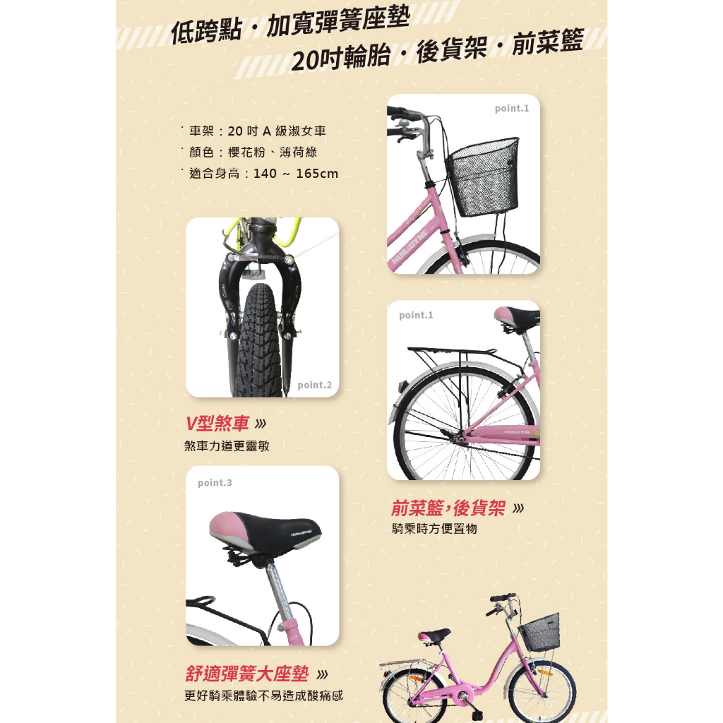 【H&D】20吋單速淑女車 DIY版|140公分即可騎乘 代步腳踏車 買菜載貨 舒適大座墊 | 可成車寄送 車架一年保固薄荷綠|葡萄紫|星空藍CyclingHD樂活單車館