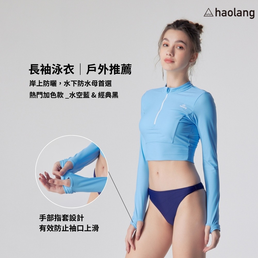 Haolang 天空藍短版長袖泳衣(TOP)/防曬/衝浪/自由潛水/運動/拉鍊S|M|L|XLSwimming AttireHaolang浩浪泳裝