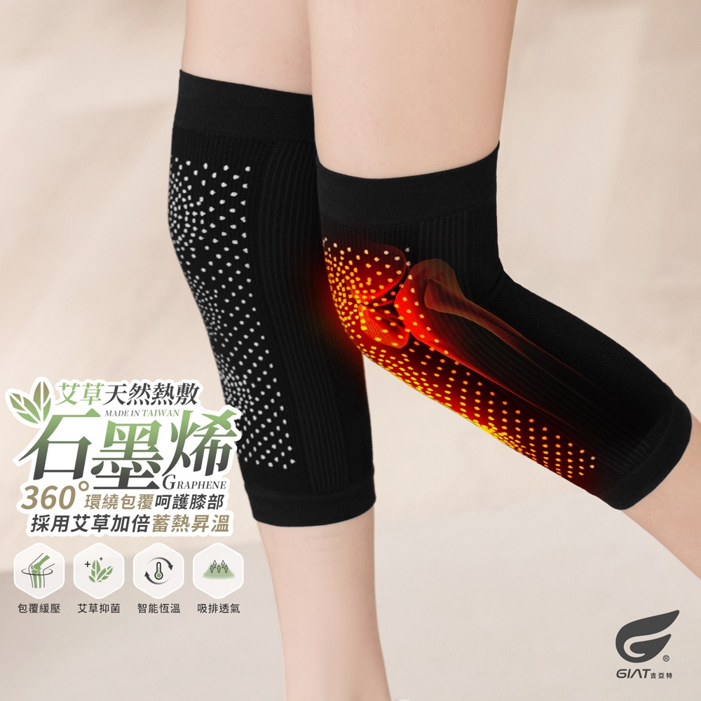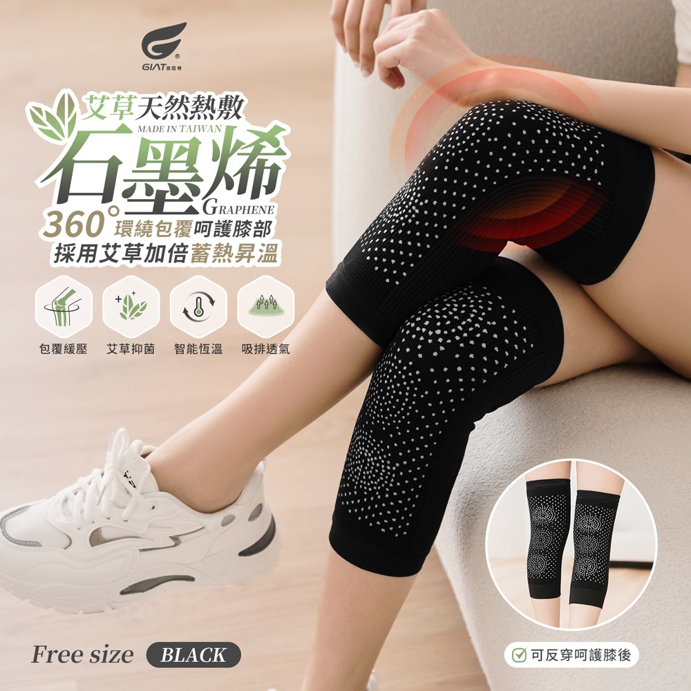 【GIAT】艾草石墨烯運動彈力護膝套 台灣製 男女適用 運動護具 (本品非醫療用途)護膝1雙/黑色,FREE(單一尺寸)|備註,FREE(單一尺寸)Gym Protective GearsGIAT吉亞特 官方旗艦店