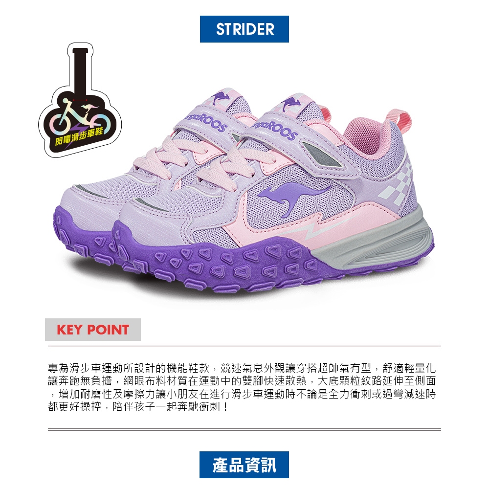 【KangaROOS 美國袋鼠鞋】童鞋(尺寸16-22公分) STRIDER 滑步車機能童鞋 (紫/粉-KK41797)16cm|17cm|18cm|19cm|20cm|21cm|22cmKid’s Sport ShoesKangaROOS 美國袋鼠鞋 官方旗艦店