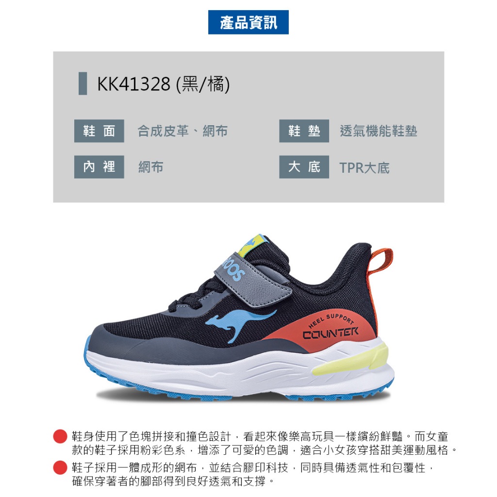 【KangaROOS 美國袋鼠鞋】童鞋 DYNARUN 超輕量童鞋 拼接撞色 支撐透氣 (黑/橘-KK41328)19cm|20cm|21cm|21.5cm|22cm|22.5cm|23cmKid’s Sport ShoesKangaROOS 美國袋鼠鞋 官方旗艦店