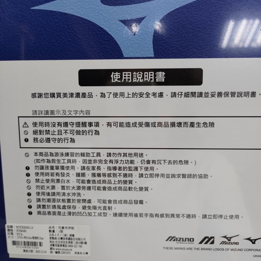 MIZUNO SWIM N3TBB39114 兒童用浮板 踢水板 改善泳姿 訓練 戲水 台灣製 藍【iSport愛運動】14 深藍,請先詢問庫存Swimming & Divingisport愛運動商城