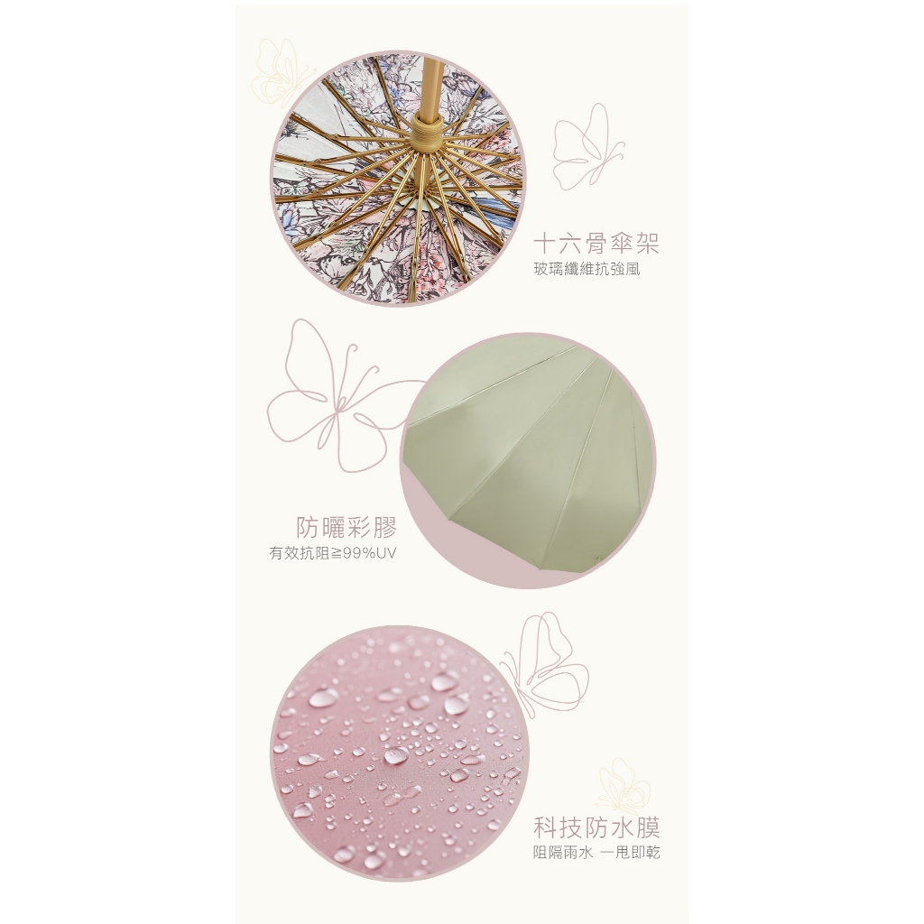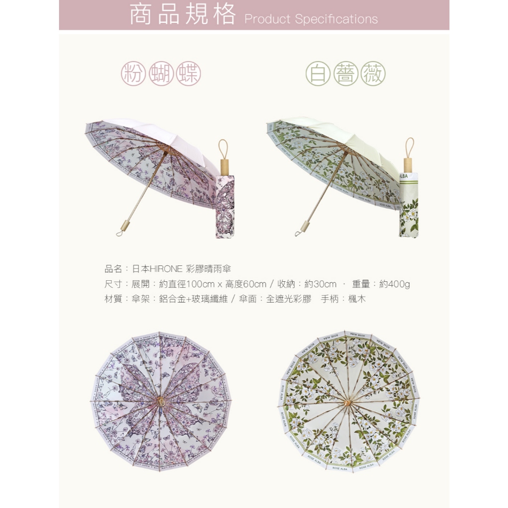 【Hirone】彩膠晴雨傘(粉蝴蝶/白薔薇)兩色任選白薔薇|粉蝴蝶UmbrellasGu.Kang 固鋼官方旗艦店