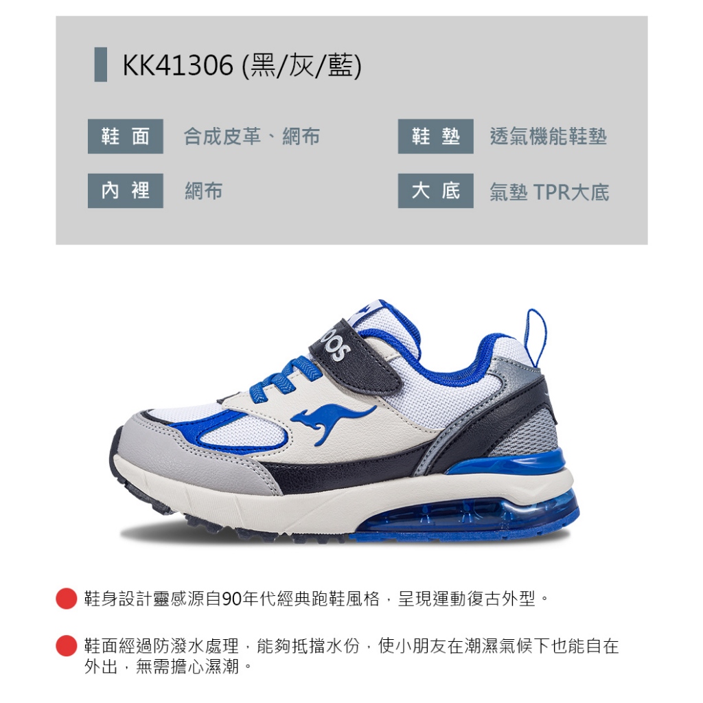 【KangaROOS 美國袋鼠鞋】童鞋 K-RIDER 2 防潑水氣墊童鞋 穩定支撐 (黑/灰/藍-KK41306)19cm|20cm|21cm|21.5cm|22cm|22.5cm|23cmKid’s Sport ShoesKangaROOS 美國袋鼠鞋 官方旗艦店