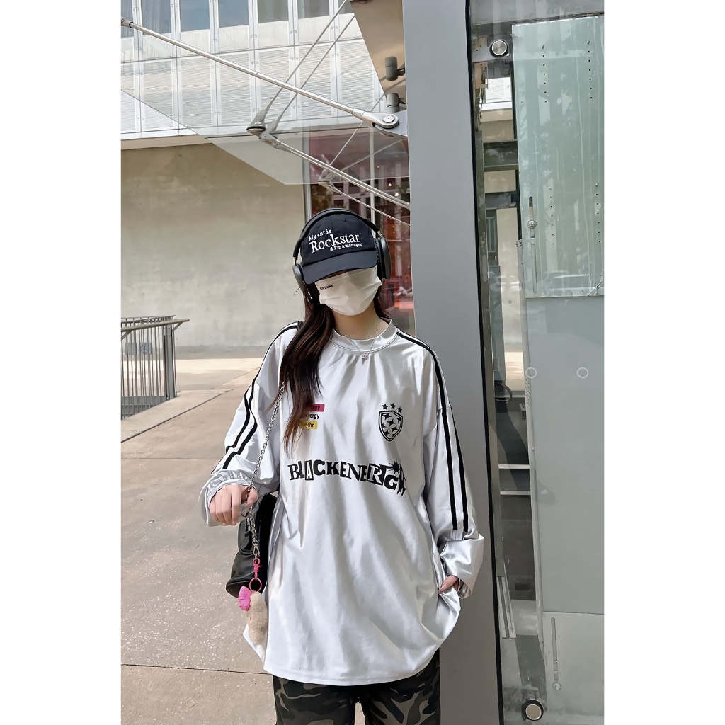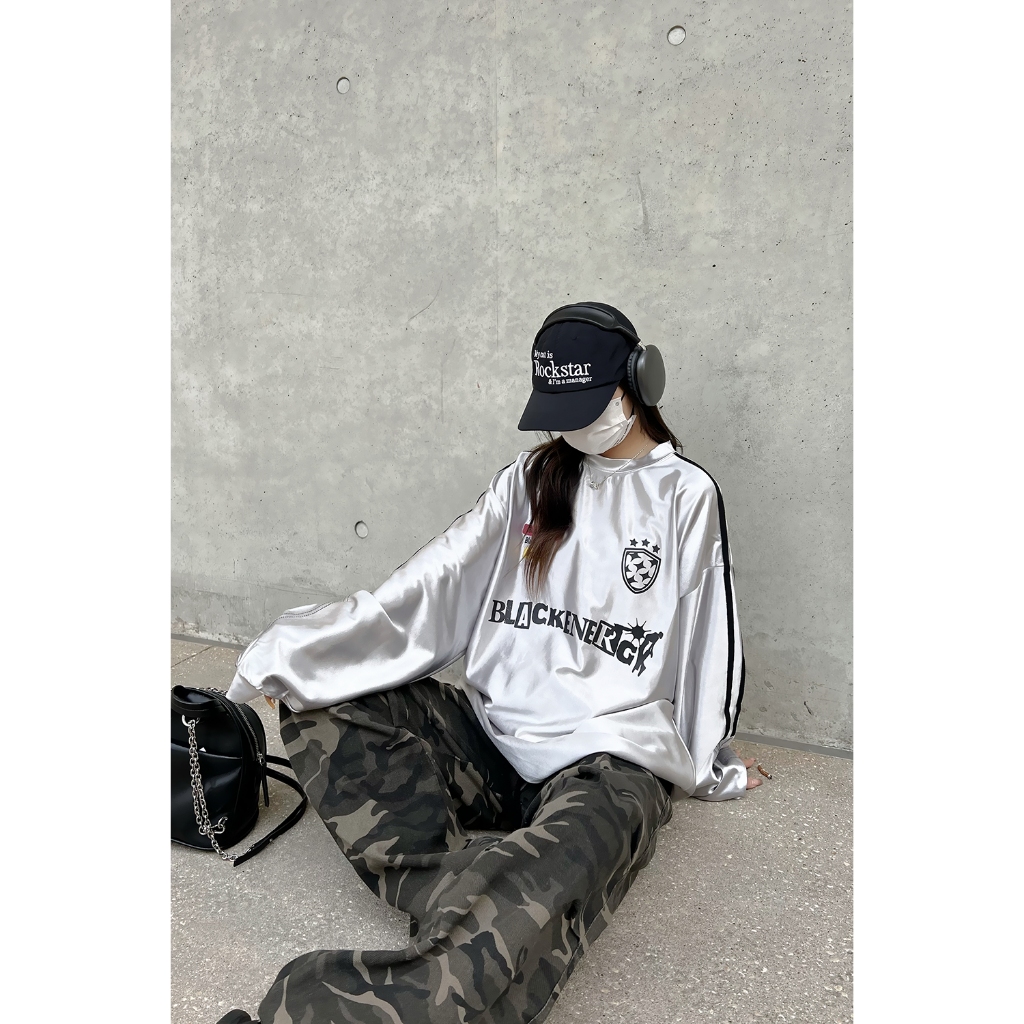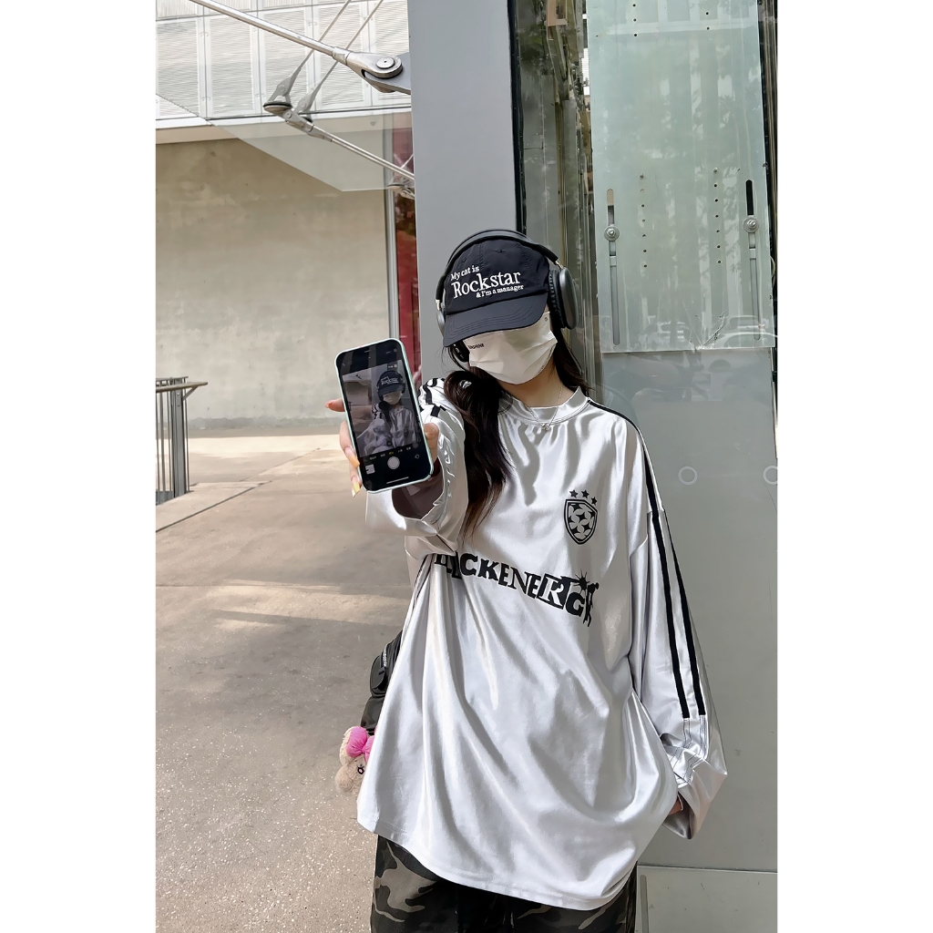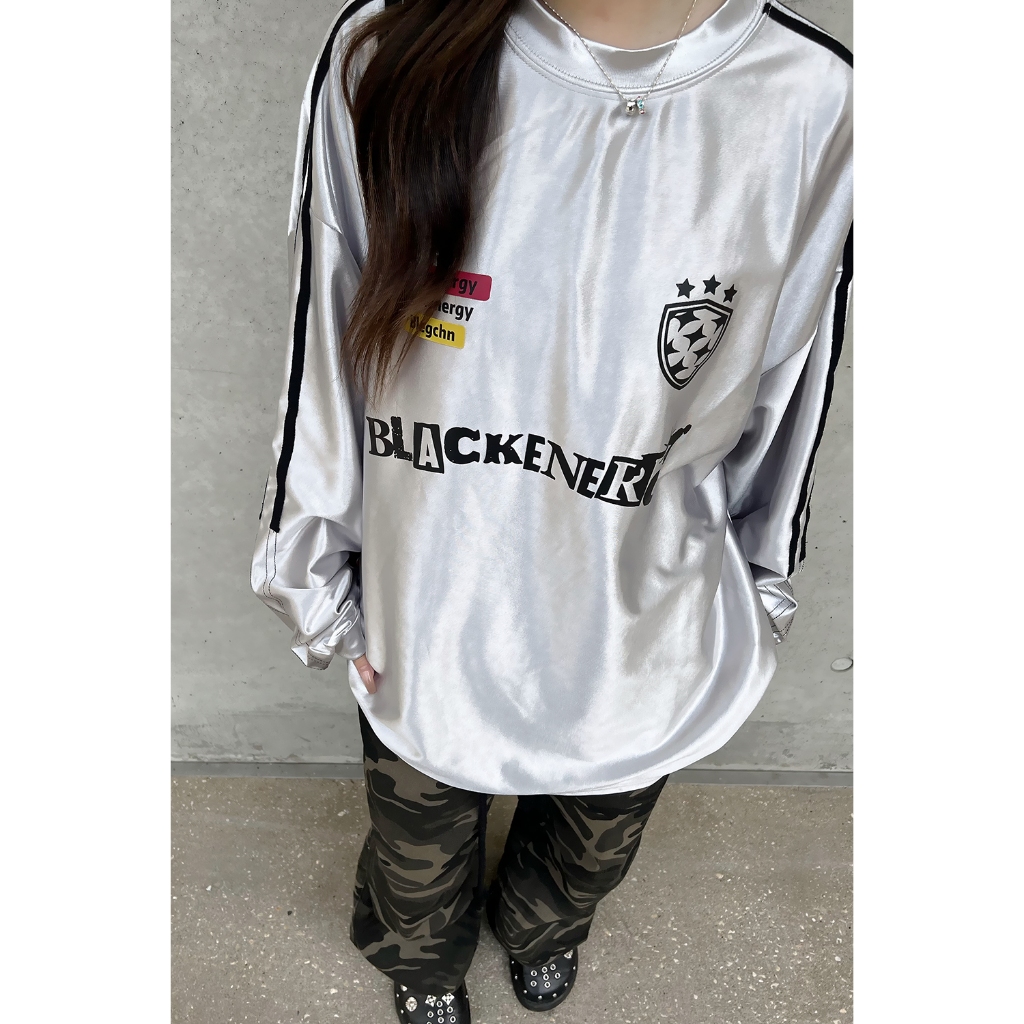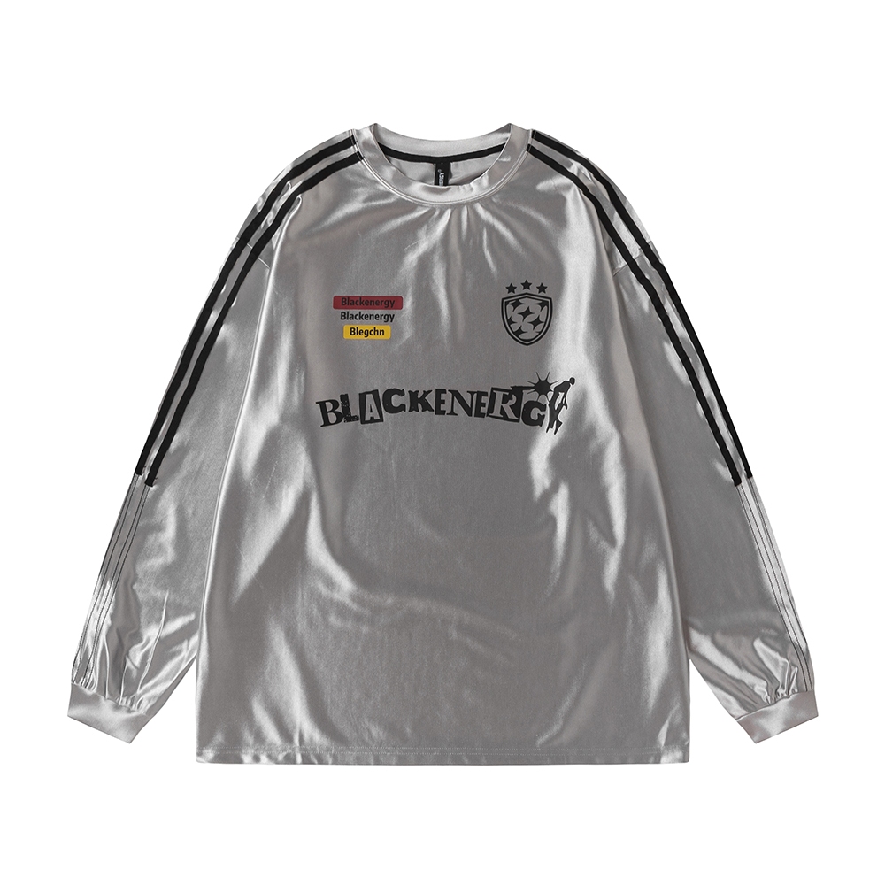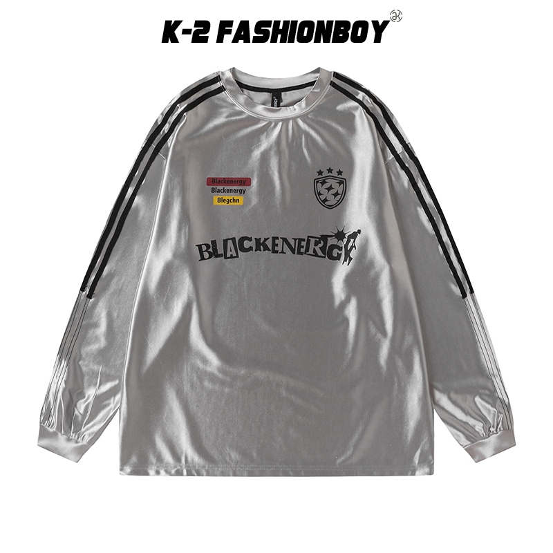 【K-2】BLACKENERGY 銀色 滑面布料 球衣 長袖上衣 寬鬆 男女不拘 超帥 2024最流行【HBC428M】