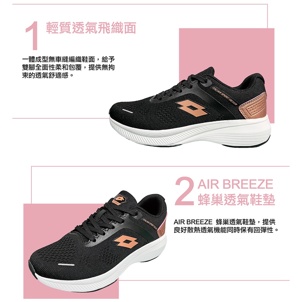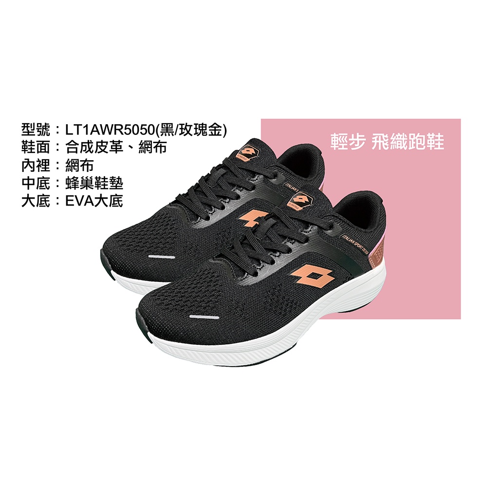 【LOTTO 義大利】女 輕步 飛織跑鞋(黑/玫瑰金-LT1AWR5050)25.5cm|23cm|23.5cm|24cm|24.5cm|25cmRunning ShoesLOTTO 樂得官方商城