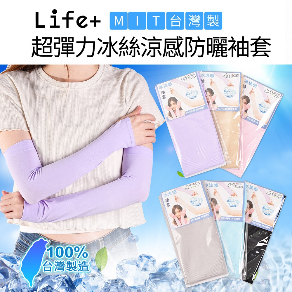 【Life+】MIT超彈力冰絲涼感防曬袖套_2入組櫻花粉|夢幻紫|膚色|質感灰|神秘黑|海沫藍OthersLife+ 品牌旗艦館