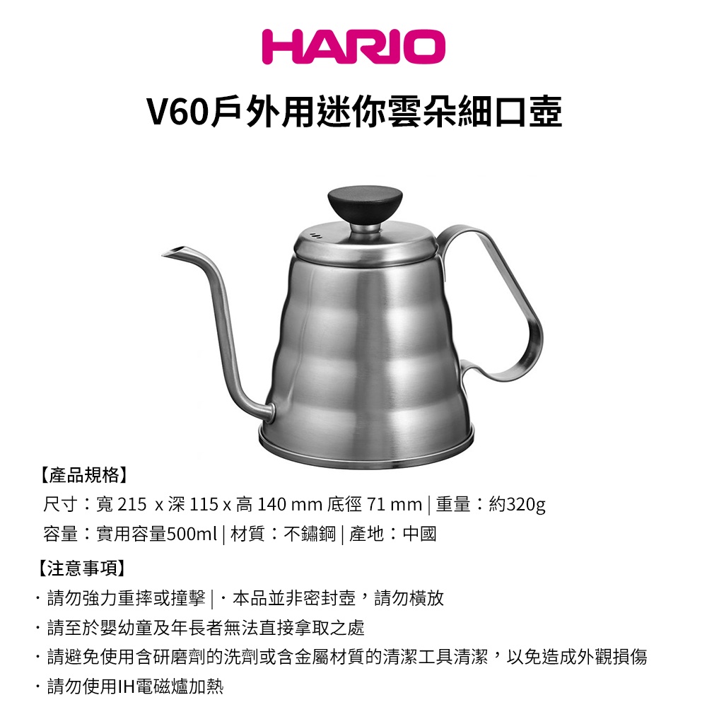 HARIO V60戶外旅行露營登山用不鏽鋼迷你雲朵手沖細口壺 500ml O-VKB-70-HSV現貨V60戶外用迷你雲朵細口壺Camping & HikingGOATSTORY咖啡生活館