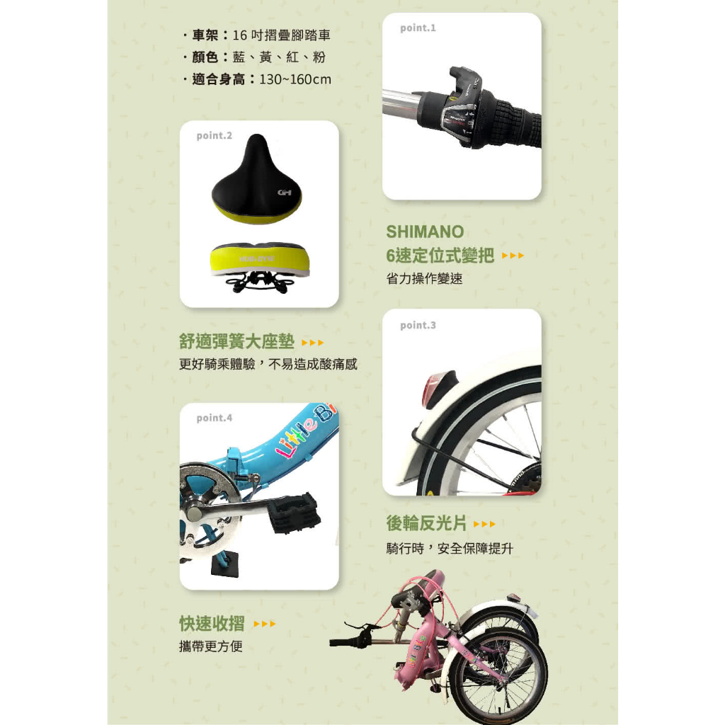 【H&D】Little bike 16吋6速兒童折疊車 | 兒童腳踏車 日本SHIMANO變速 | 車架一年保固紅new|粉紅new|螢光黃new|粉藍newCyclingHD樂活單車館