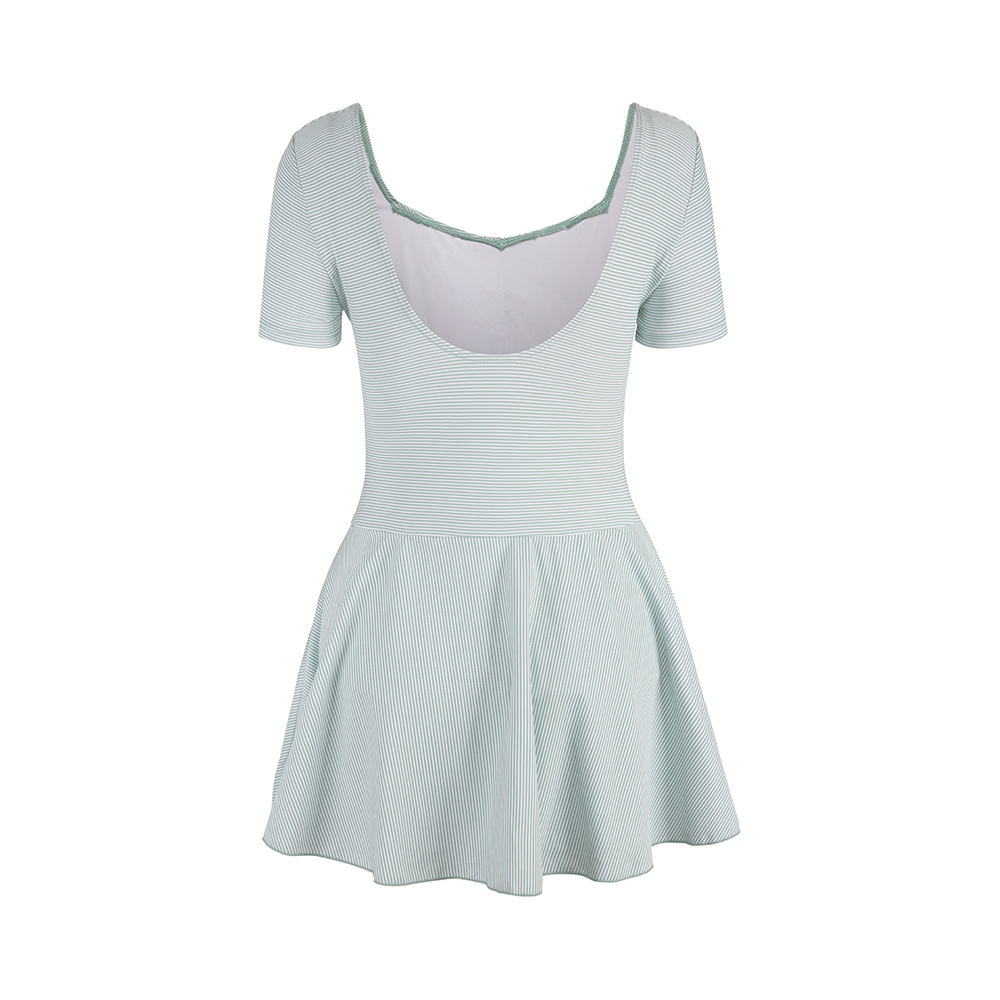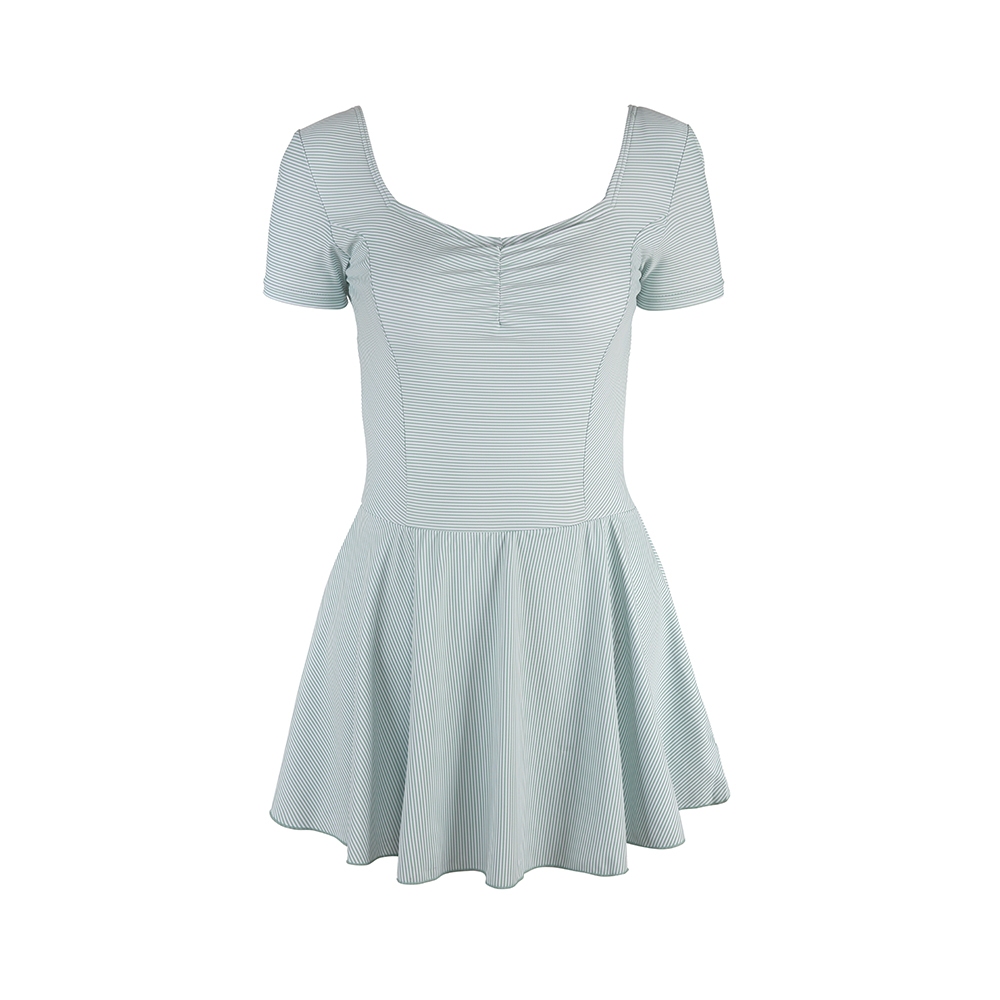 Heatwave熱浪 連身裙式泳衣女綠色條紋大碼保守遮肉顯瘦印花度假溫泉泳裝綠色,XL|綠色,2XLSwimming AttireHeatwave熱浪泳衣官方旗艦店