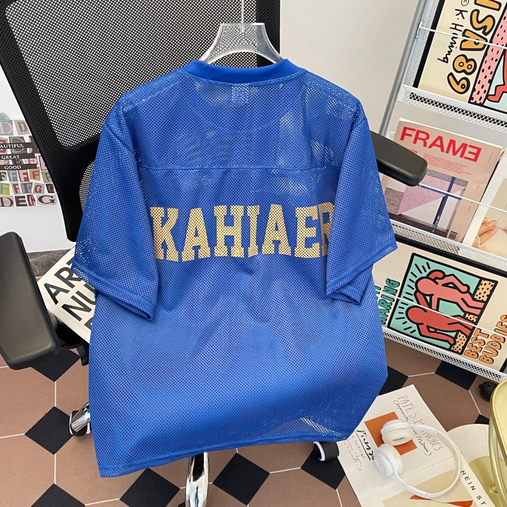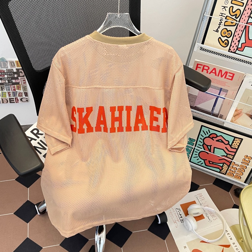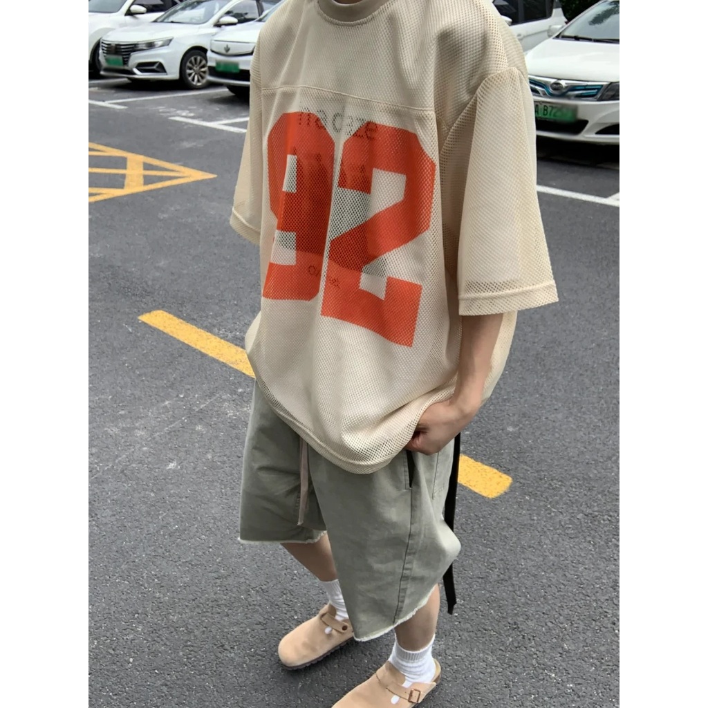 【K-2】92號 洞洞網眼 寬鬆球衣 透視感 美式 復古 短袖球衣 寬鬆 球衣 透氣 Y2K球衣 K2【JT52】杏色,M|杏色,L|藍色,M|藍色,LJerseysK-2 Fashionboy