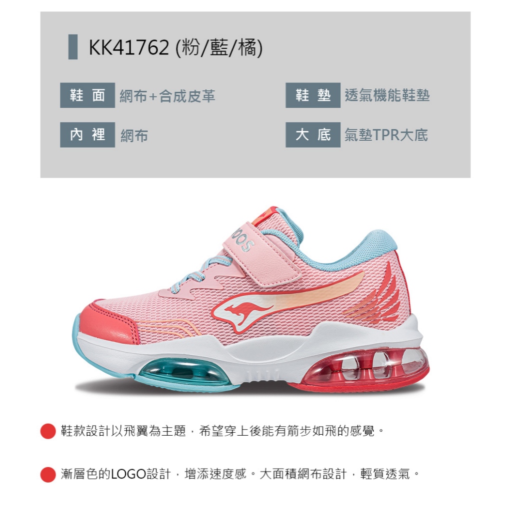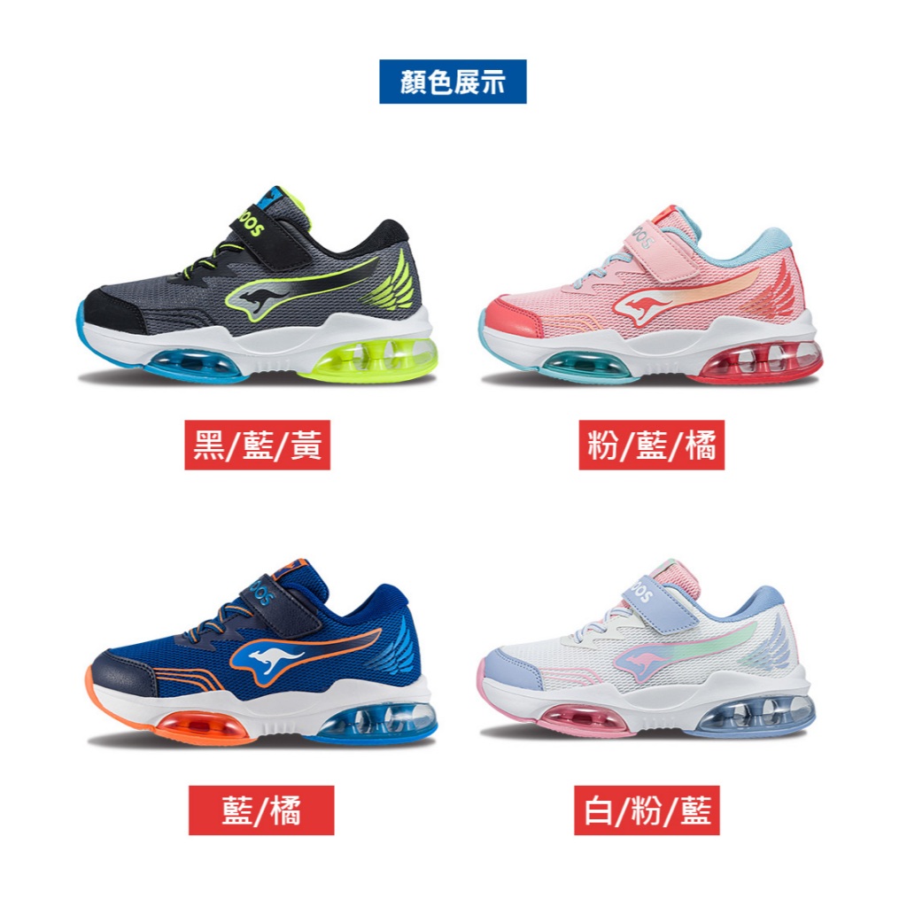 【KangaROOS 美國袋鼠鞋】童鞋 WING 雙氣墊童鞋 透氣網布 運動氣墊 兒童運動鞋 (四款任選)黑/藍/黃,19cm|黑/藍/黃,20cm|黑/藍/黃,21cm|黑/藍/黃,21.5cm|黑/藍/黃,22cm|黑/藍/黃,22.5cm|黑/藍/黃,23cm|粉/藍/橘,19cm|粉/藍/橘,20cm|粉/藍/橘,21cm|粉/藍/橘,21.5cm|粉/藍/橘,22cm|粉/藍/橘,22.5cm|粉/藍/橘,23cm|藍/橘,19cm|藍/橘,20cm|藍/橘,21cm|藍/橘,21.5cm|藍/橘,22cm|藍/橘,22.5cm|藍/橘,23cm|白/粉/藍,19cm|白/粉/藍,20cm|白/粉/藍,21cm|白/粉/藍,21.5cm|白/粉/藍,22cm|白/粉/藍,22.5cm|白/粉/藍,23cmKid’s Sport ShoesKangaROOS 美國袋鼠鞋 官方旗艦店