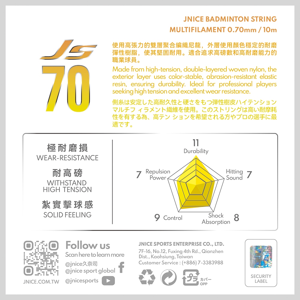 【JNICE久奈司】耐用性 JS-70 羽毛球拍線 羽球拍線 羽球線(彩虹/螢光黃/白)彩色|螢光黃|白色BadmintonJNICE 久奈司旗艦店 羽球拍|羽球|匹克球|匹克球拍|運動服飾|球拍袋