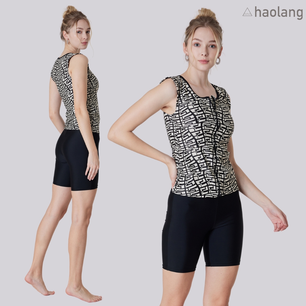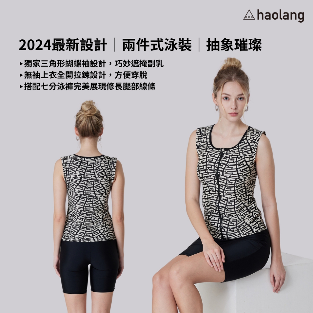 Haolang 抽象璀璨兩件式泳衣/微方領設計/三角形蝴蝶袖設計M|L|XL|2LSwimming AttireHaolang浩浪泳裝
