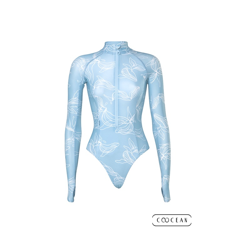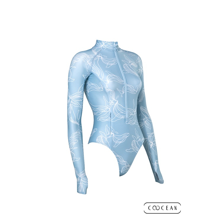 《COOCEAN》—ECONYL® 海廢再生防曬高衩連身泳衣 鯨魚藍|【IDiver海怪水下】自潛 衝浪 SUP 泳池XS|S|MSwimming AttireIDiver海怪水下|潛水用品旗艦店