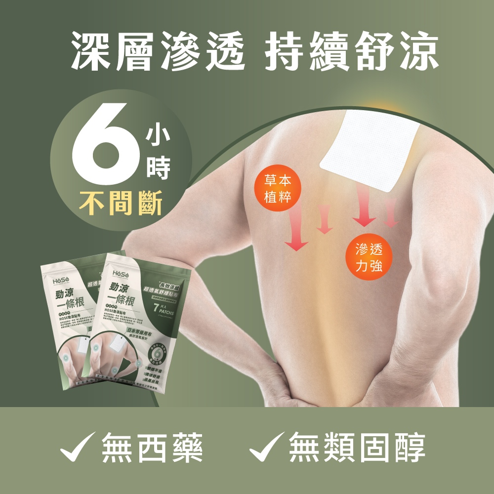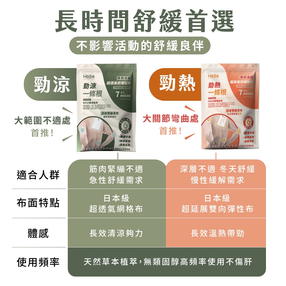 【HOSE 奧運金牌李洋推薦】大尺寸天然草本植萃配方 超延展勁熱貼布/超透氣勁涼貼布 (7片/包) 無類固醇、西藥成分