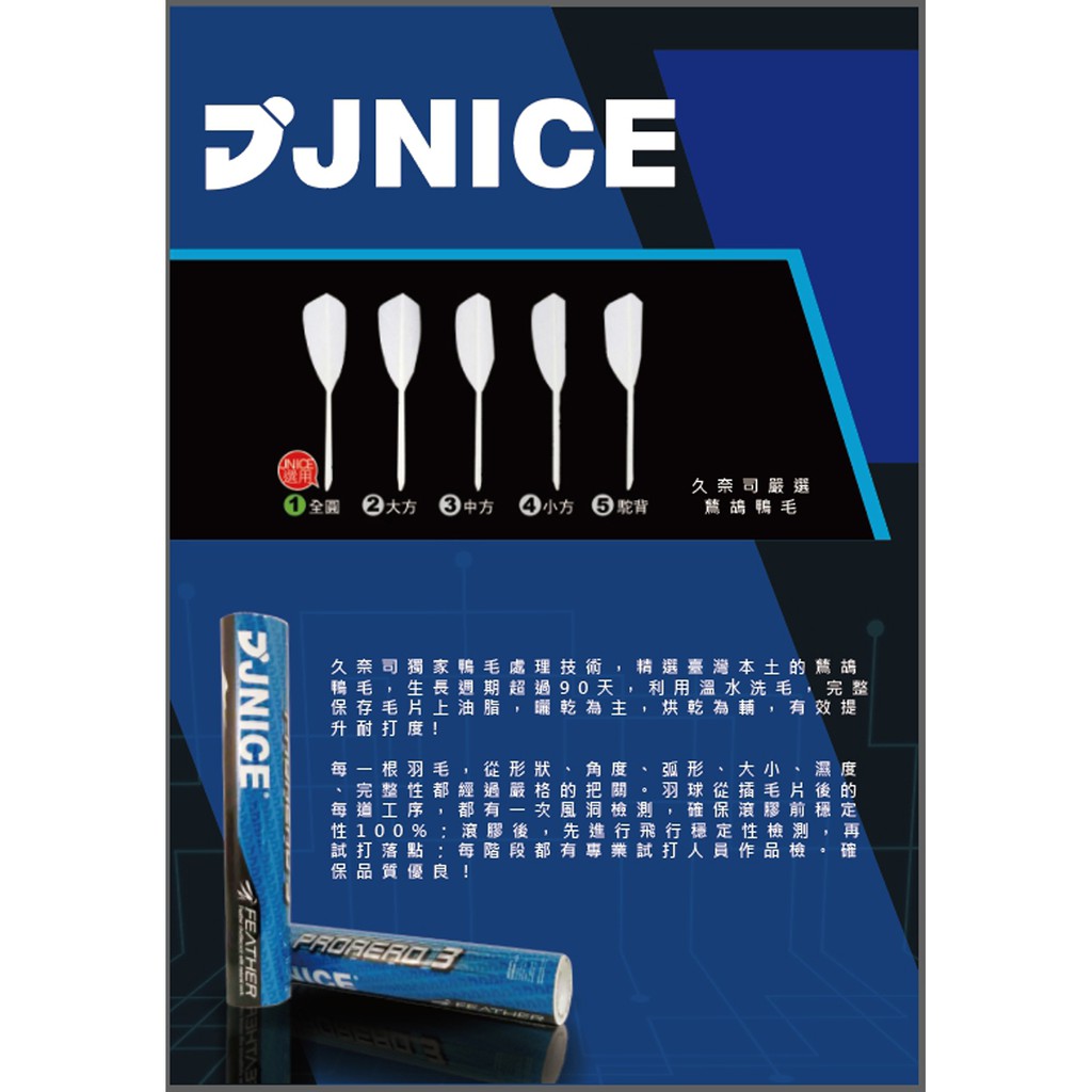 【JNICE 久奈司】PROAERO3專業超耐打羽球 鴨毛 比賽級羽毛球 羽球 飛行品質穩定76速 (適合32±3.5°C)|77速 (適合25±3.5°C)|78速 (適合18±3.5°C)BadmintonJNICE 久奈司旗艦店 羽球拍|羽球|匹克球|匹克球拍|運動服飾|球拍袋