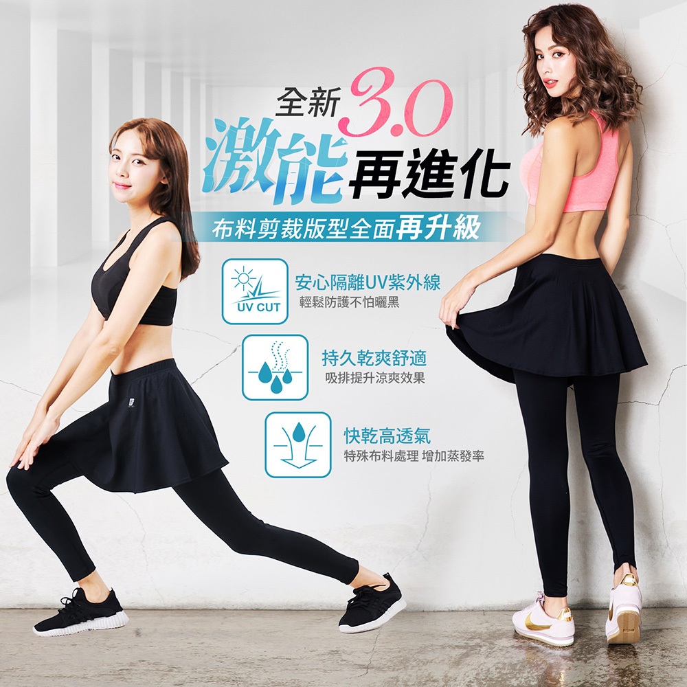 【GIAT】UPF50+防曬吸排速乾女壓力裙褲(激能3.0升級款/花式裙擺) 台灣製 運動褲 壓縮褲 加壓褲S|M|L|XLBottomsGIAT吉亞特 官方旗艦店