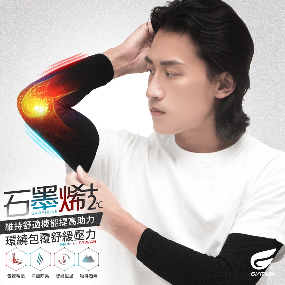 【GIAT】石墨烯運動彈力護肘套 台灣製 男女適用 運動護具 (本品非醫療用途)備註,FREE(單一尺寸)|護肘1雙/黑色,FREE(單一尺寸)Gym Protective GearsGIAT吉亞特 官方旗艦店
