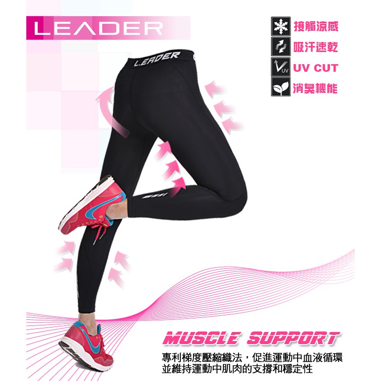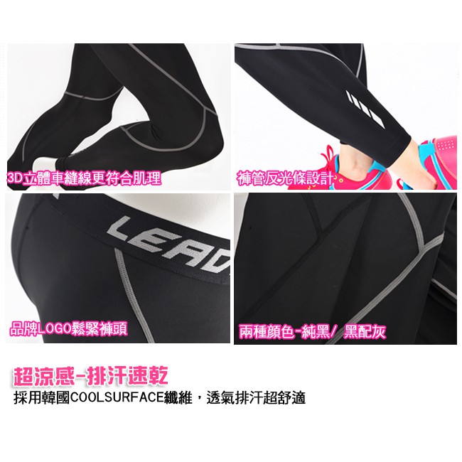 【Leader X】女性專用 SportFit運動壓縮緊身褲(黑灰)(台灣24h出貨)S|XSBottomsLeader Sports 官方直營店