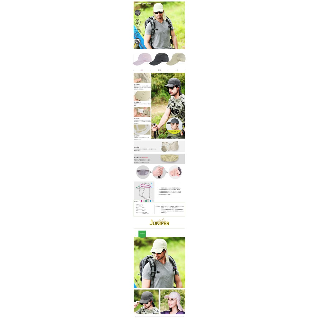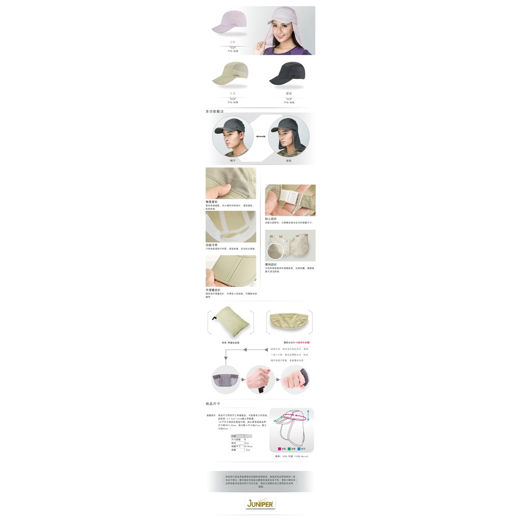JUNIPER抗UV防曬可收納運動遮陽帽+披風-J7501卡其|淺粉|深灰Sports & Outdoor HatsJUNIPER 專業機能品牌_官方商店