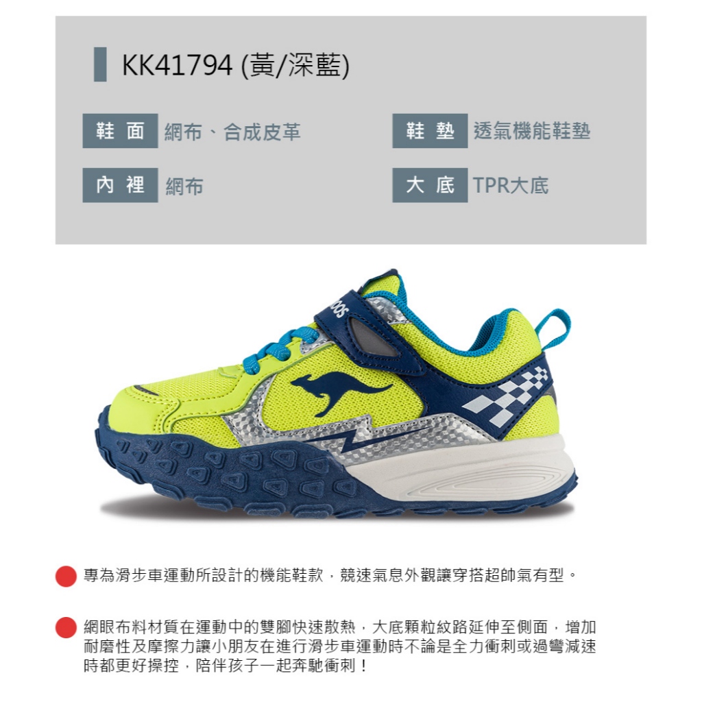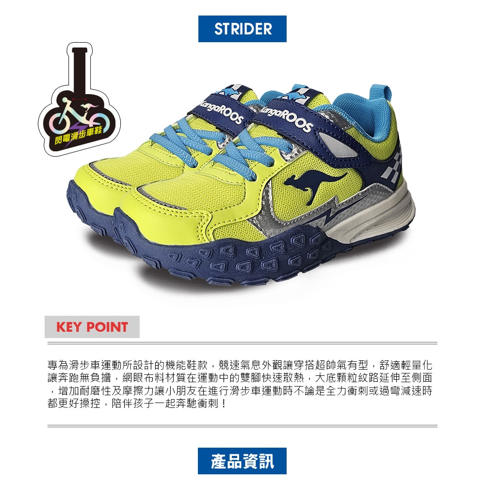 【KangaROOS 美國袋鼠鞋】童鞋(尺寸16-22公分)STRIDER滑步車機能童鞋 (螢光黃/藍-KK41794)16cm|17cm|18cm|19cm|20cm|21cm|22cmKid’s Sport ShoesKangaROOS 美國袋鼠鞋 官方旗艦店