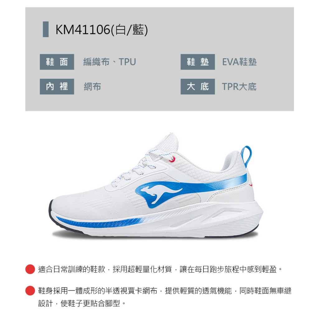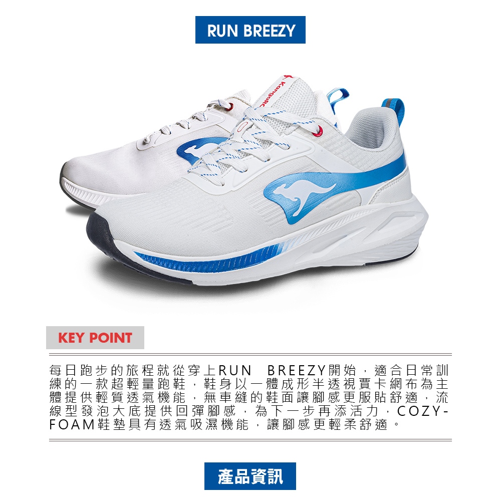 【KangaROOS 美國袋鼠鞋】男鞋 RUN BREEZY 超輕量跑鞋 輕質透氣 貼合腳型 (白/藍-KM41106)25.5cm|26cm|26.5cm|27cm|27.5cm|28cm|29cmRunning ShoesKangaROOS 美國袋鼠鞋 官方旗艦店