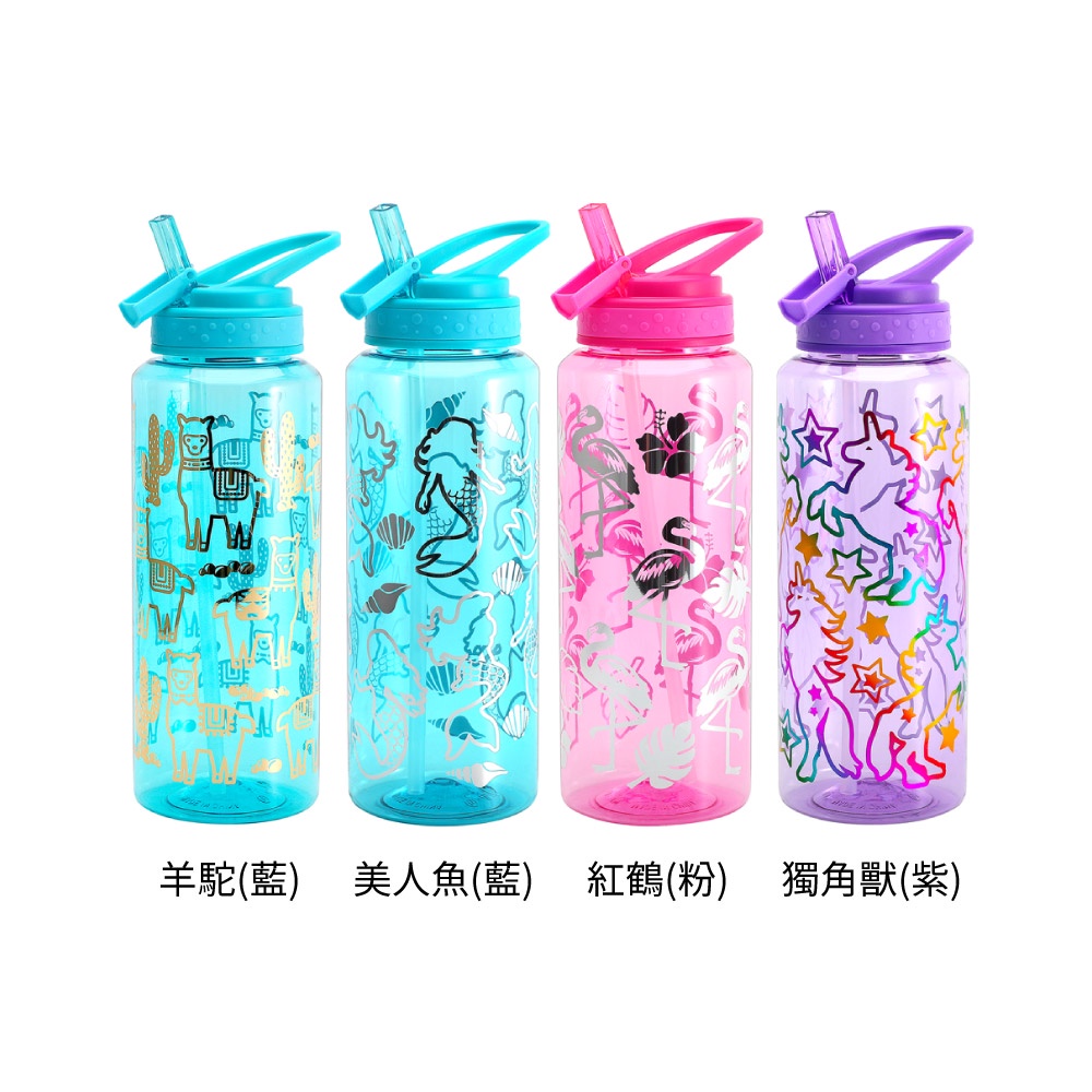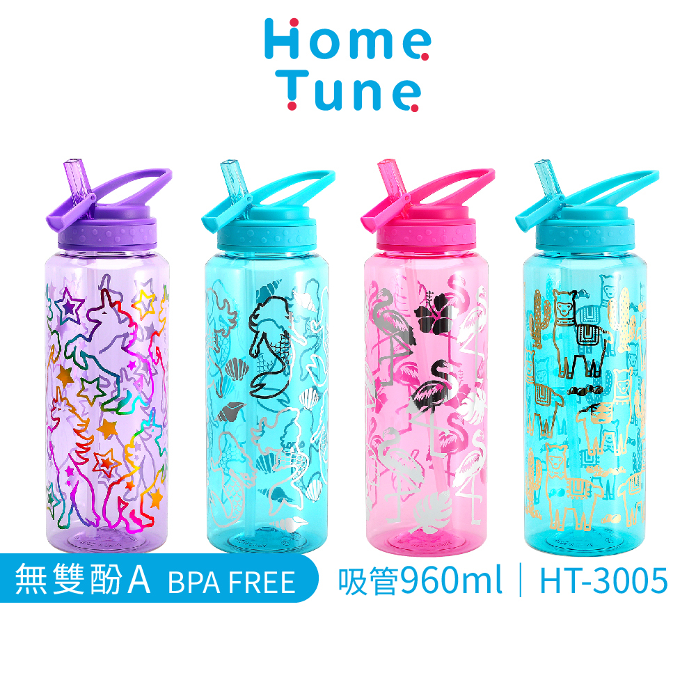 【特價出清】Home Tune大容量翻蓋吸管水壺32oz/960ml|兒童水壺運動水壺大容量水壺HT-3005獨角獸(紫)|紅鶴(粉)|羊駝(藍)|美人魚(藍)Fitness EquipmentHome Tune家音
