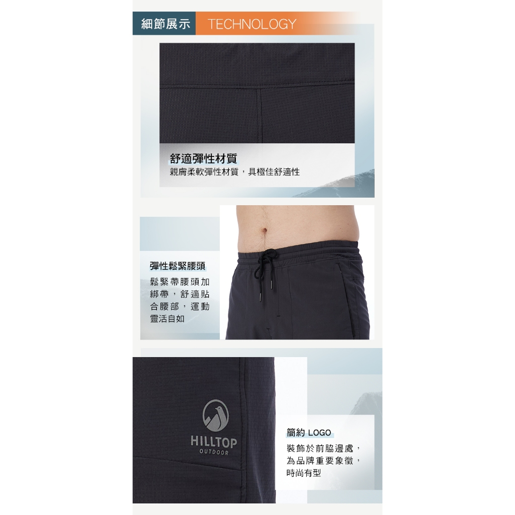 【Hilltop山頂鳥】超潑水抗UV彈性短褲 男款 黑|PS09XM83ECA030|32|34|36BottomsHILLTOP 山頂鳥 官方旗艦館