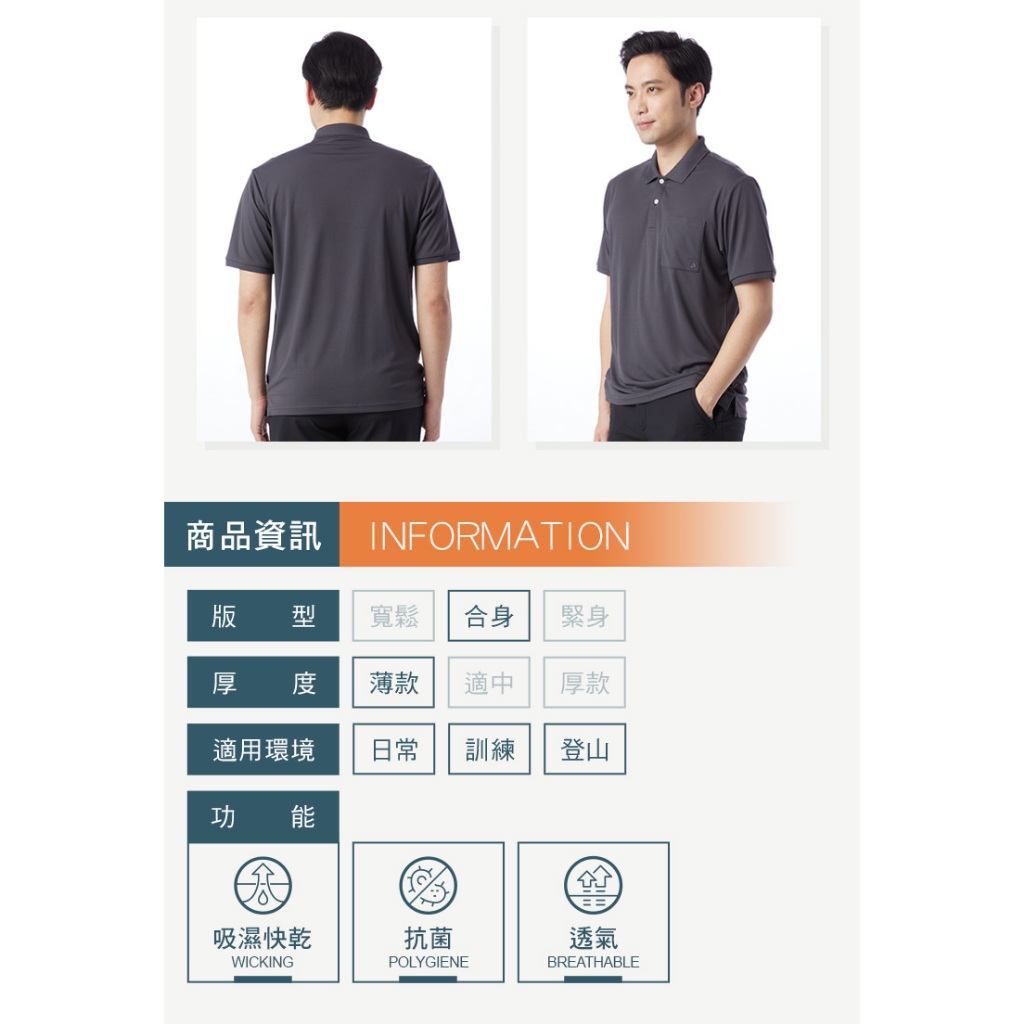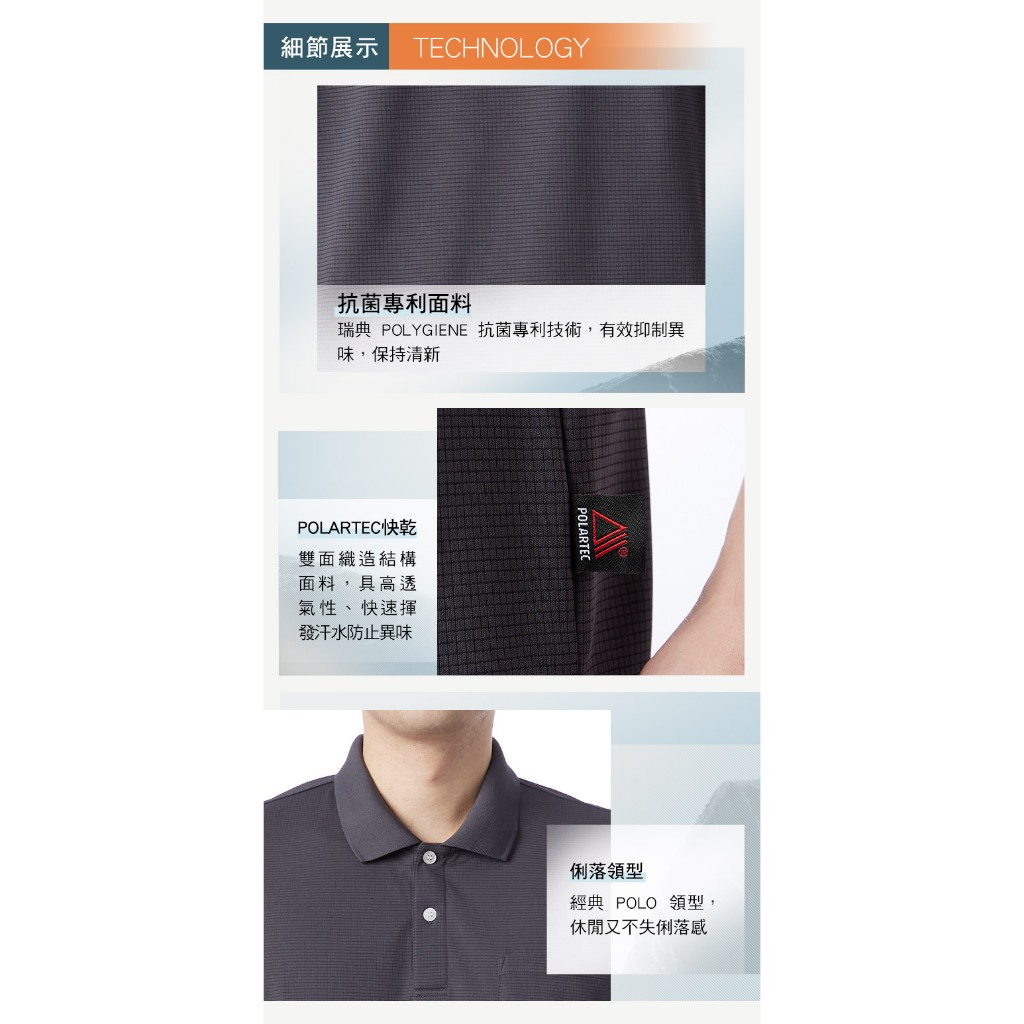 【Hilltop山頂鳥】POLARTEC快乾 Polygiene抗菌POLO衫 男款 灰PS14XMK3ECK0S|M|L|XL|2XLT-shirtsHILLTOP 山頂鳥 官方旗艦館