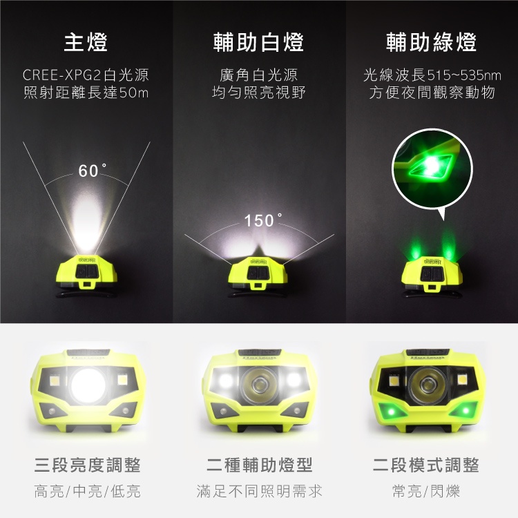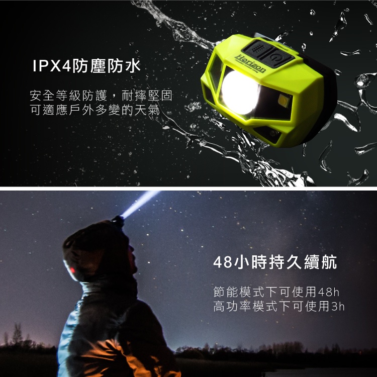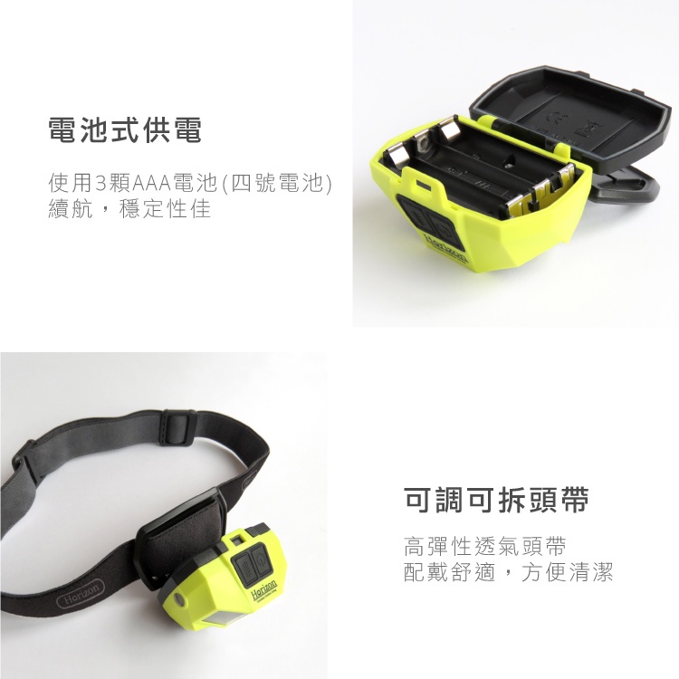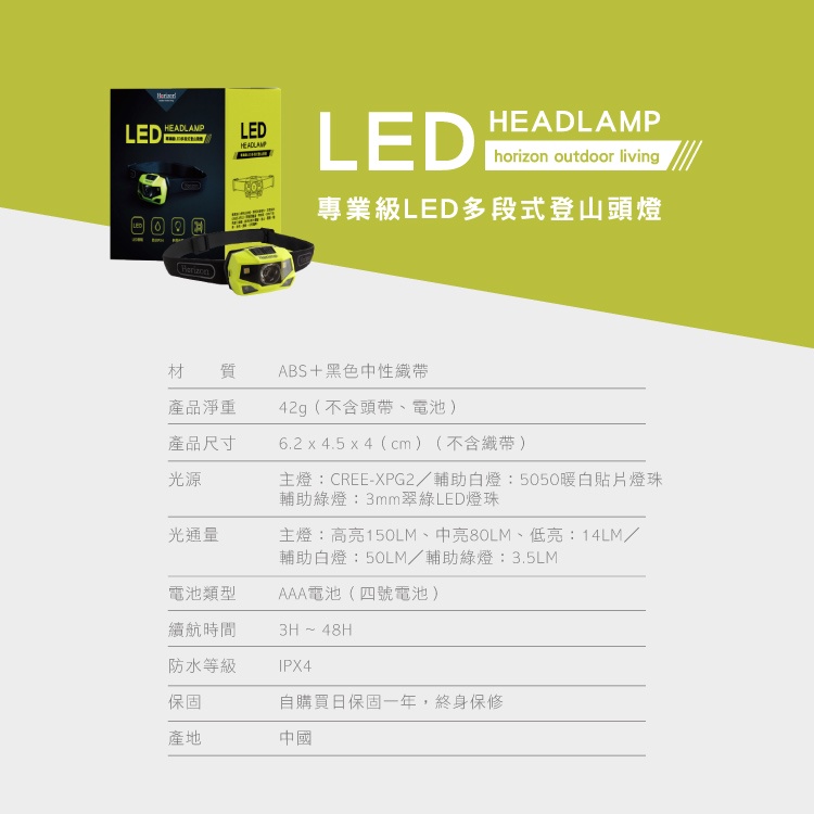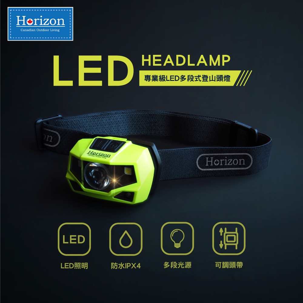 【天際線 Horizon 一年保固 多段燈源切換】最強登山頭燈-乾電池│150度超廣角│生態有善│IPX4防塵防水