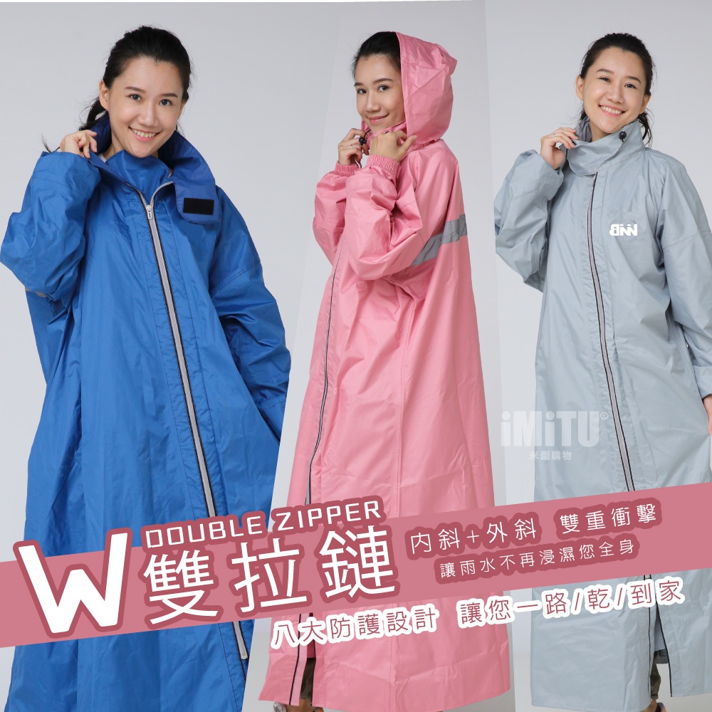 /台灣現貨/ BNN W雙拉鍊 專利防滲漏風雨衣 內斜+外斜設計 快速穿脫英格藍(版型男女適穿),2XL(152-160cm)|英格藍(版型男女適穿),3XL(160-170cm)|英格藍(版型男女適穿),4XL(170-180cm)|英格藍(版型男女適穿),5XL(180cm以上)|巴黎粉(版型男女適穿),2XL(152-160cm)|巴黎粉(版型男女適穿),3XL(160-170cm)|巴黎粉(版型男女適穿),4XL(170-180cm)|巴黎粉(版型男女適穿),5XL(180cm以上)|紐約灰(版型男女適穿),2XL(152-160cm)|紐約灰(版型男女適穿),3XL(160-170cm)|紐約灰(版型男女適穿),4XL(170-180cm)|紐約灰(版型男女適穿),5XL(180cm以上)Rain Coatsimitu 米圖